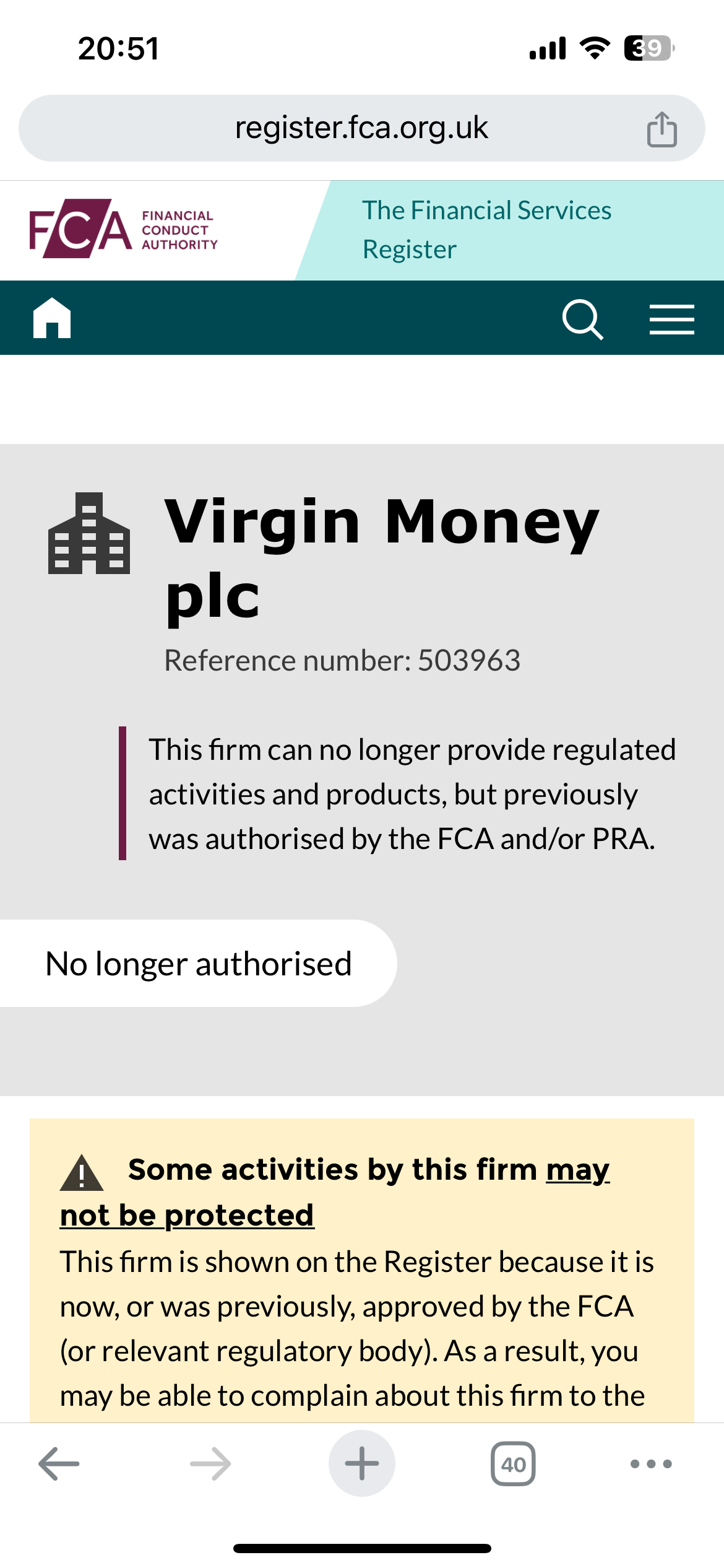 I imagine from what you've posted above that you are concerned about the fact they are no longer authorised by the FCA. You don't need to be - your money is ring fenced and it will be safe and protected, however long the transfer takes.Tomevans35 said:Is anyone else having issues with virgin money pension transfers?I have been attempting to move to pensions from virgin money to another platform. I have been waiting since January, I have raised a formal complaint but whenever I call up I get no real answers.Apparently they are no longer authorised by the FCA. What do I do next?Googling on your question might have been both quicker and easier, if you're only after simple facts rather than opinions!0