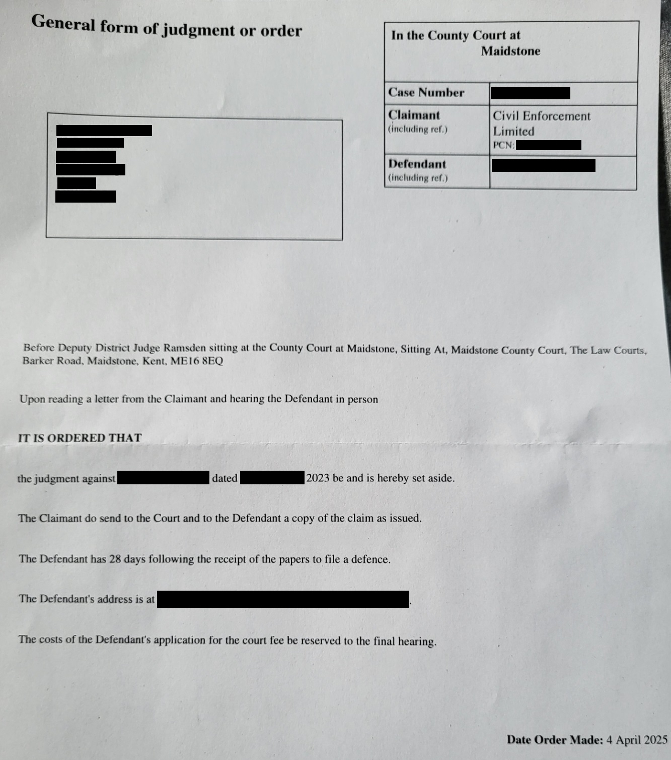 In the meantime CEL have produced another offer below, interestingly they seem to have forgotten that they in fact did offer me something similar back in June which I already rejected.We refer to your application to set aside Judgment which has been forwarded to us by xxx County Court. We note your grounds for setting aside Judgment. As you do not deny parking at the location, it is our position that your application to set aside judgment will be refused.