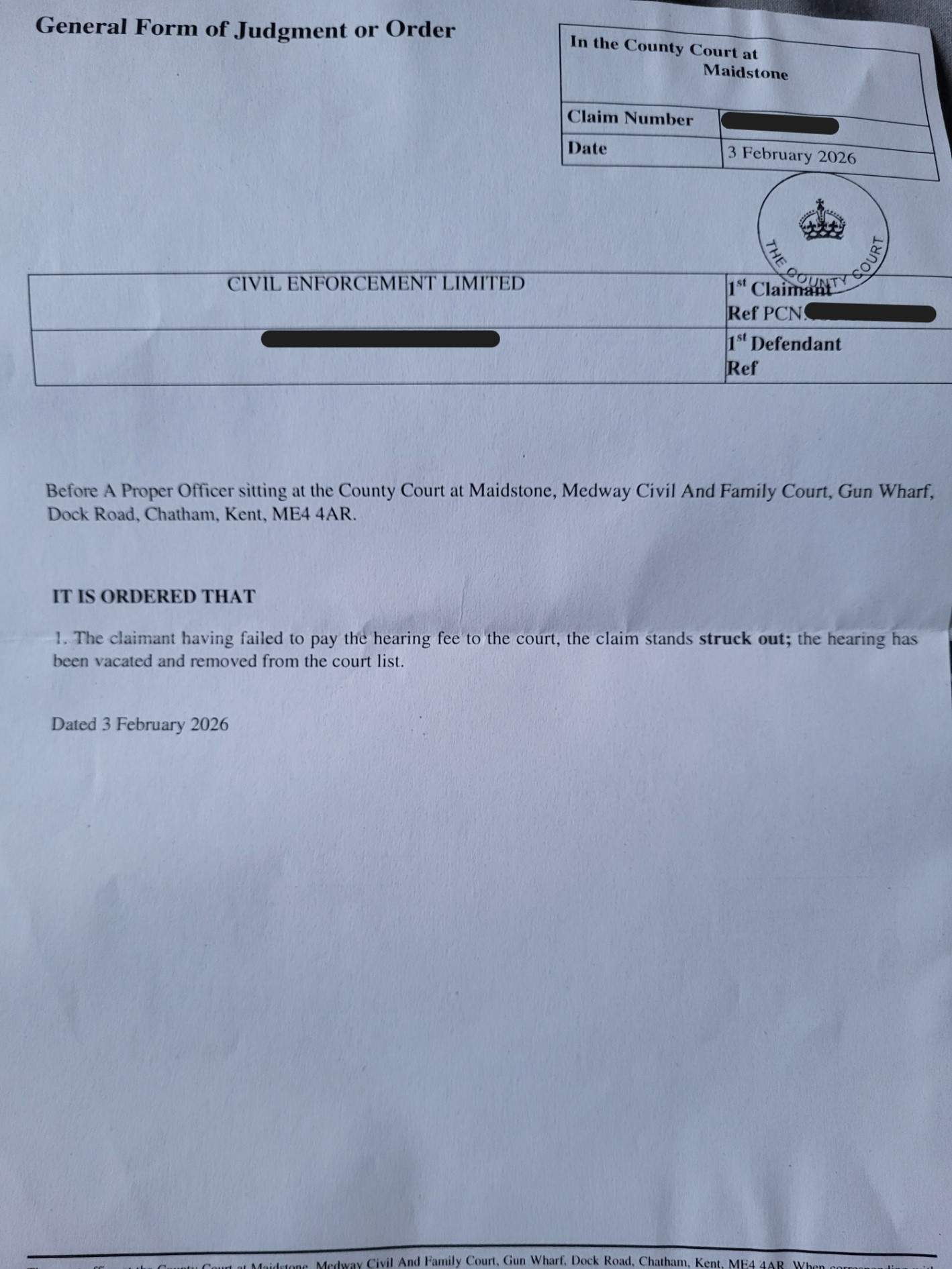 3.1. Civil Enforcement Limited v Chan (Luton County Court, August 2023, Ref. E7GM9W44):