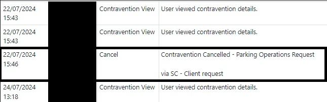 Regarding the parking charge, as I alluded to, it seems that the manager of the store at the location got her offense rescinded.