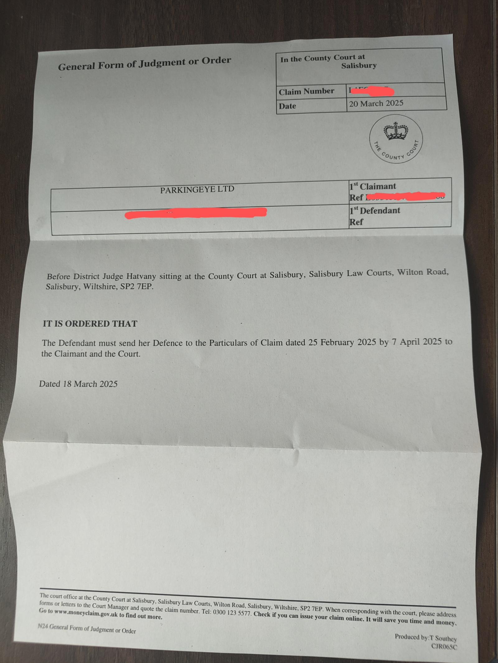 I think forward that email to the court and say this is further proof that the C has continued to act wholly unreasonably. Here is evidence that - despite knowing that the whole point of the CCJ hearing was due to them using the old address for the claim form, they then negligently breached the Judge's Order dated xx/xx/25 by (astonishingly) repeating the known improper service to the same old address! No wonder the further POC were not served. The Order is breached.PRIVATE 'PCN'? DON'T PAY BUT DON'T IGNORE IT (except N.Ireland).