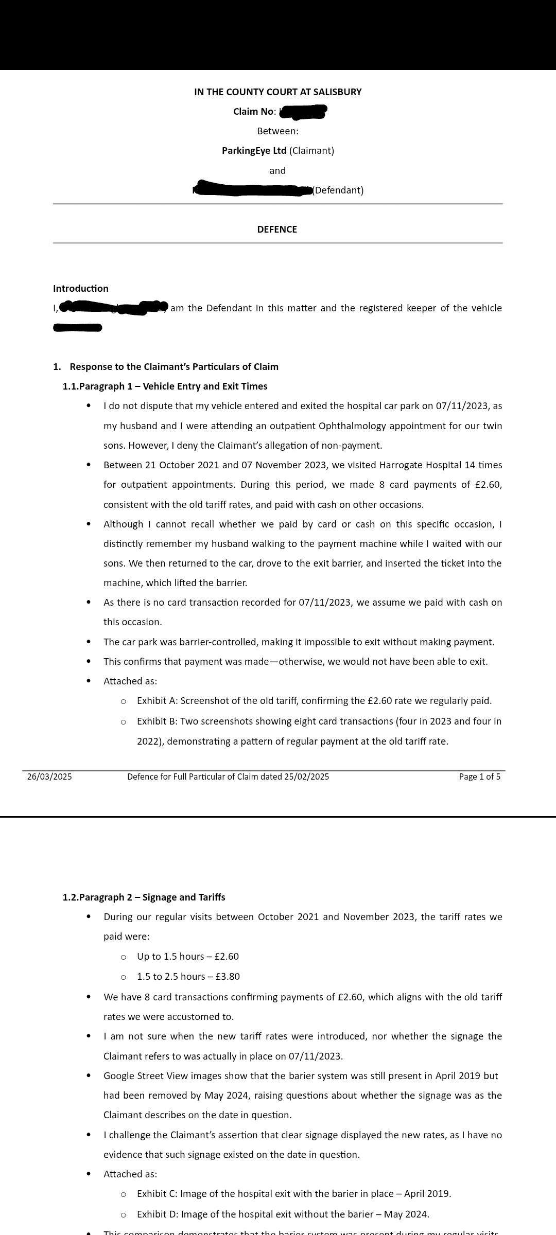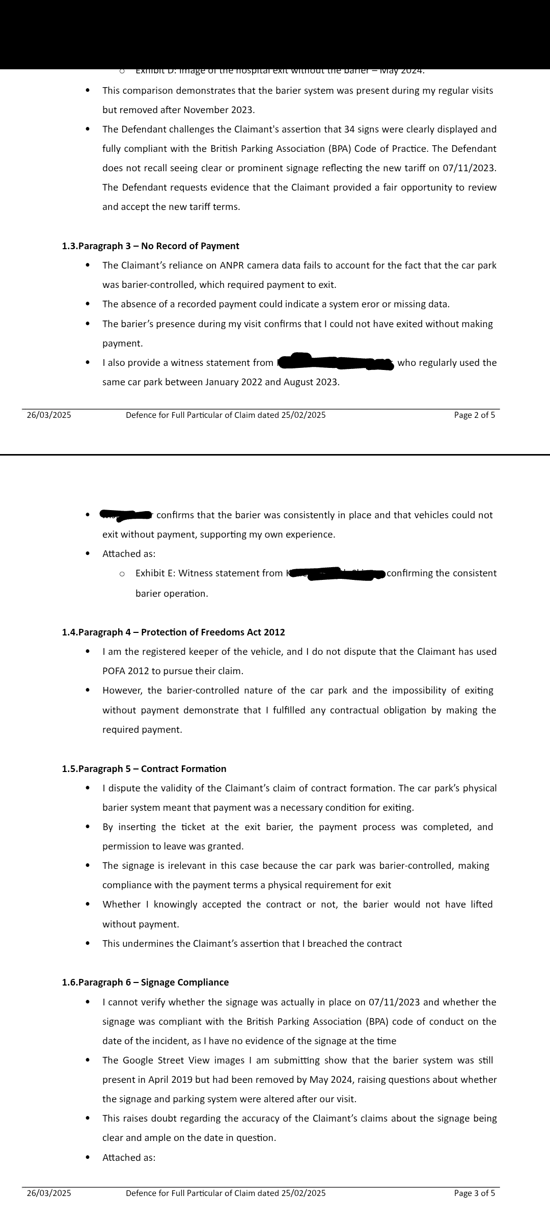 I have redone my defence and responded to each paragraph in the POC. As always grateful for any feedback. 🙂