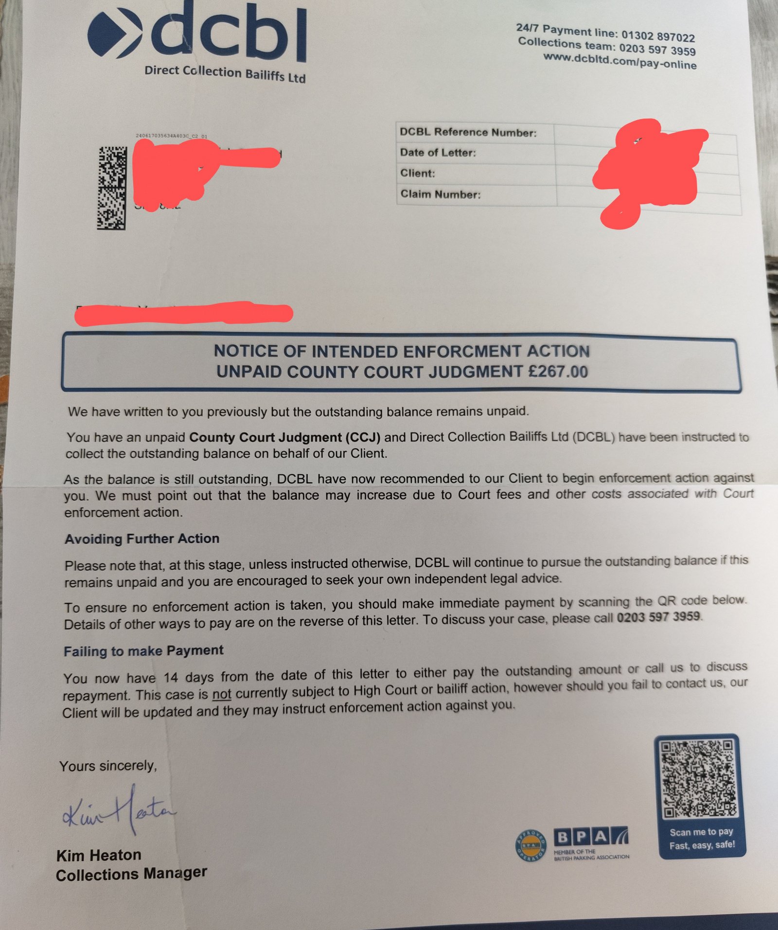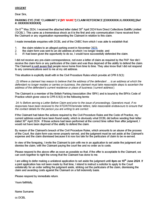 @Coupon-mad I sent the email to enforcement@parkingeye (Claimant solicitor: PARKING EYE LTD) as you previously suggested and cc'd collections@dcbltd.com in as I couldn't find a different email address.Coupon-mad said:Remember that's from a different arm of the group. It's not "them" you emailed (hopefully you emailed DCB LEGAL not DCB Ltd) but you could include the DCB Ltd letters as an extra exhibit when you apply next week.