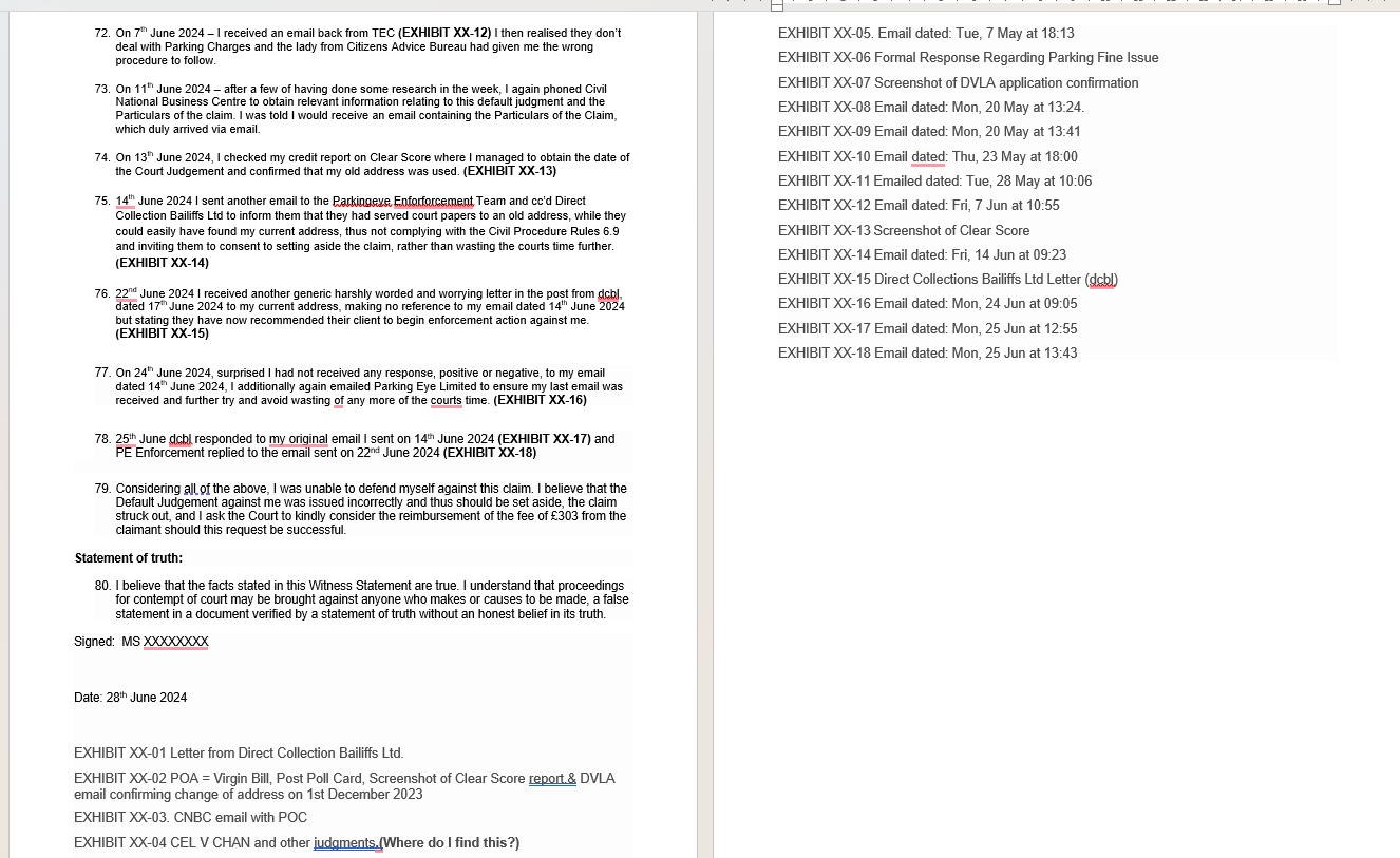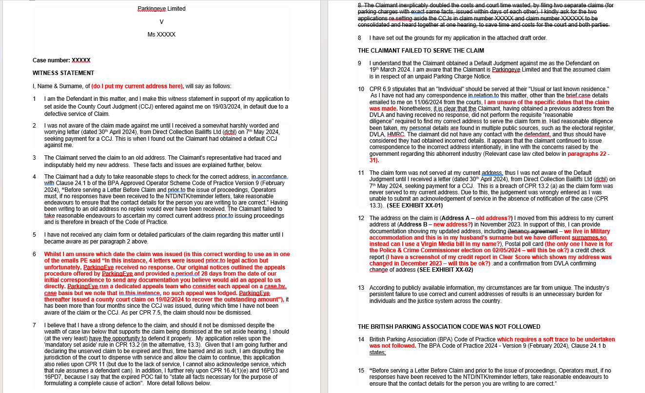 Paragraph 6 & 10 - they both say something similiar , "I am unsure of the specific dates that the claim was made." - is this correct wording to use as in one of the emails PE said “In this instance, 4 letters were issued prior to legal action but unfortunately, ParkingEye received no response. Our original notices outlined the appeals procedure offered by ParkingEye and provided a period of 28 days from the date of our initial correspondence to send any documentation you believe would aid an appeal to us directly. ParkingEye run a dedicated appeals team who consider each appeal on a case by case basis but we note that in this instance, no such appeal was lodged. ParkingEye thereafter issued a county court claim on 19/02/2024 to recover the outstanding amount”)