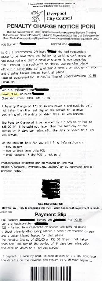Liverpool Council PCN - Incorrect Car Model on PCN