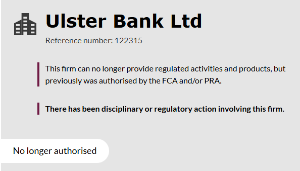 Why does the FSCS say Ulster Bank is no longer authorised?