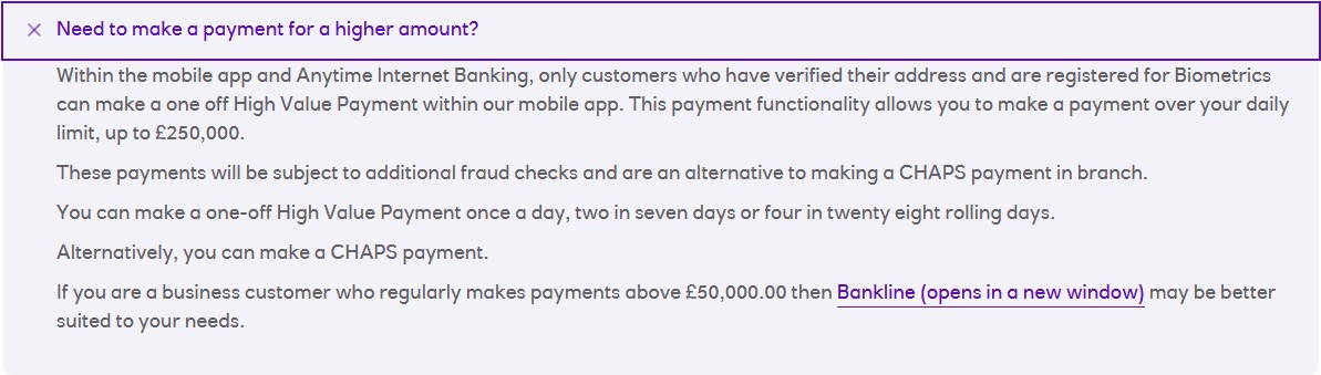 Rheumatoid said:People have said this about Natwest as well but I can find no way to pay over 20k even though I have biometrics enabled.
