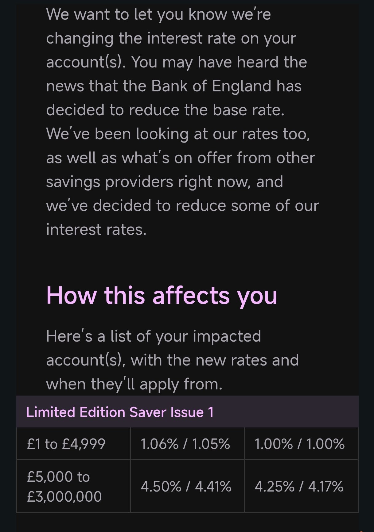 The limited edition saver. So limited they forgot to give the date the rate changes in the email