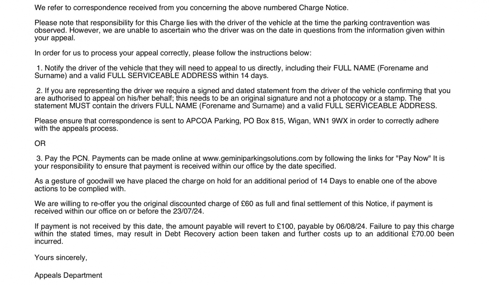 As the PPC cannot rely on PoFA to transfer liability from the unknown driver to the known keeper, they have nowhere to go with this. But you are dealing with scammers so they will do their utmost to try and scare you into paying them.3 -