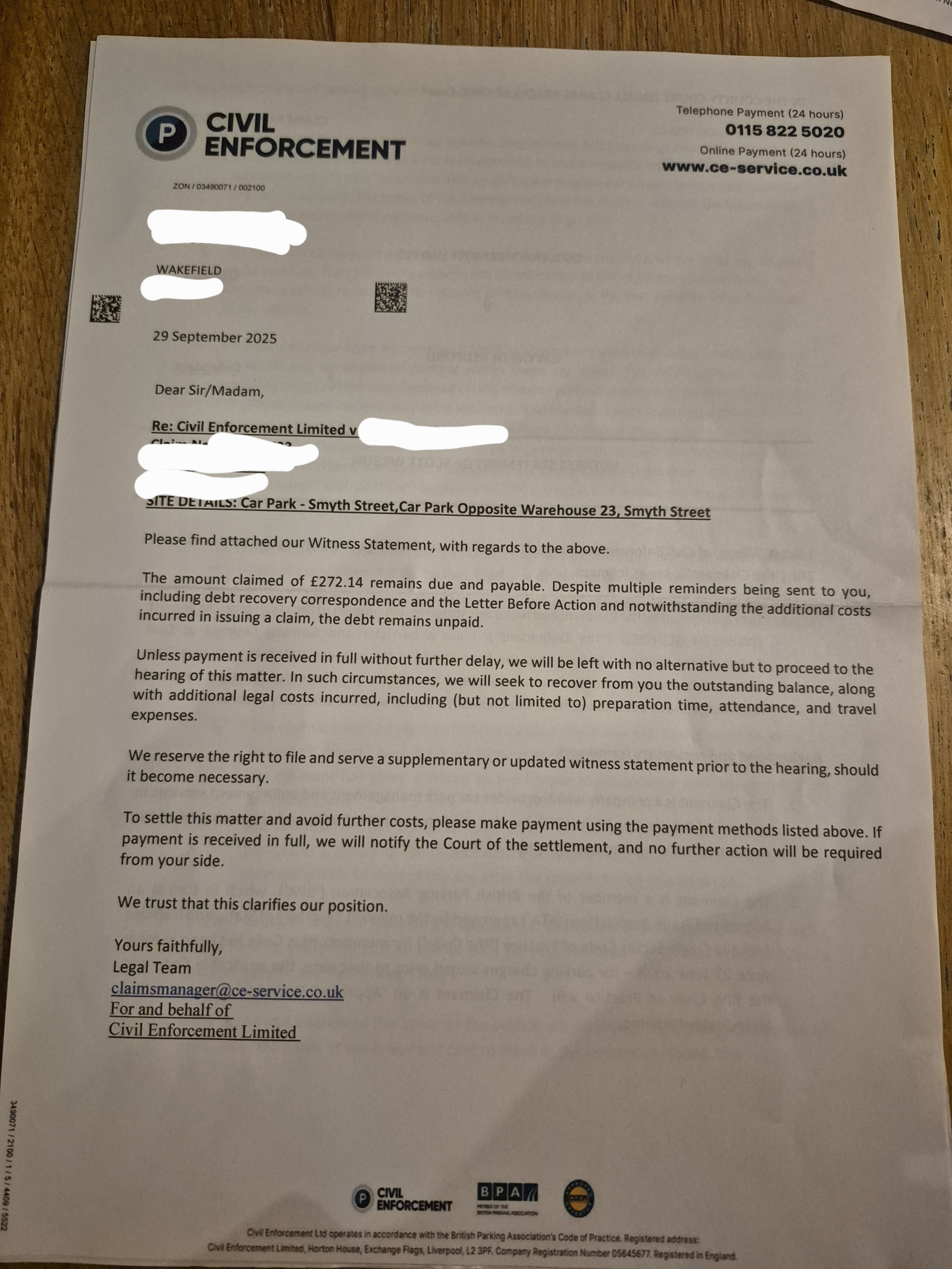 And then today this paperwork arrives from Civil Enforcement to my mother-in-law's address despite her telling them that she was not the driver.