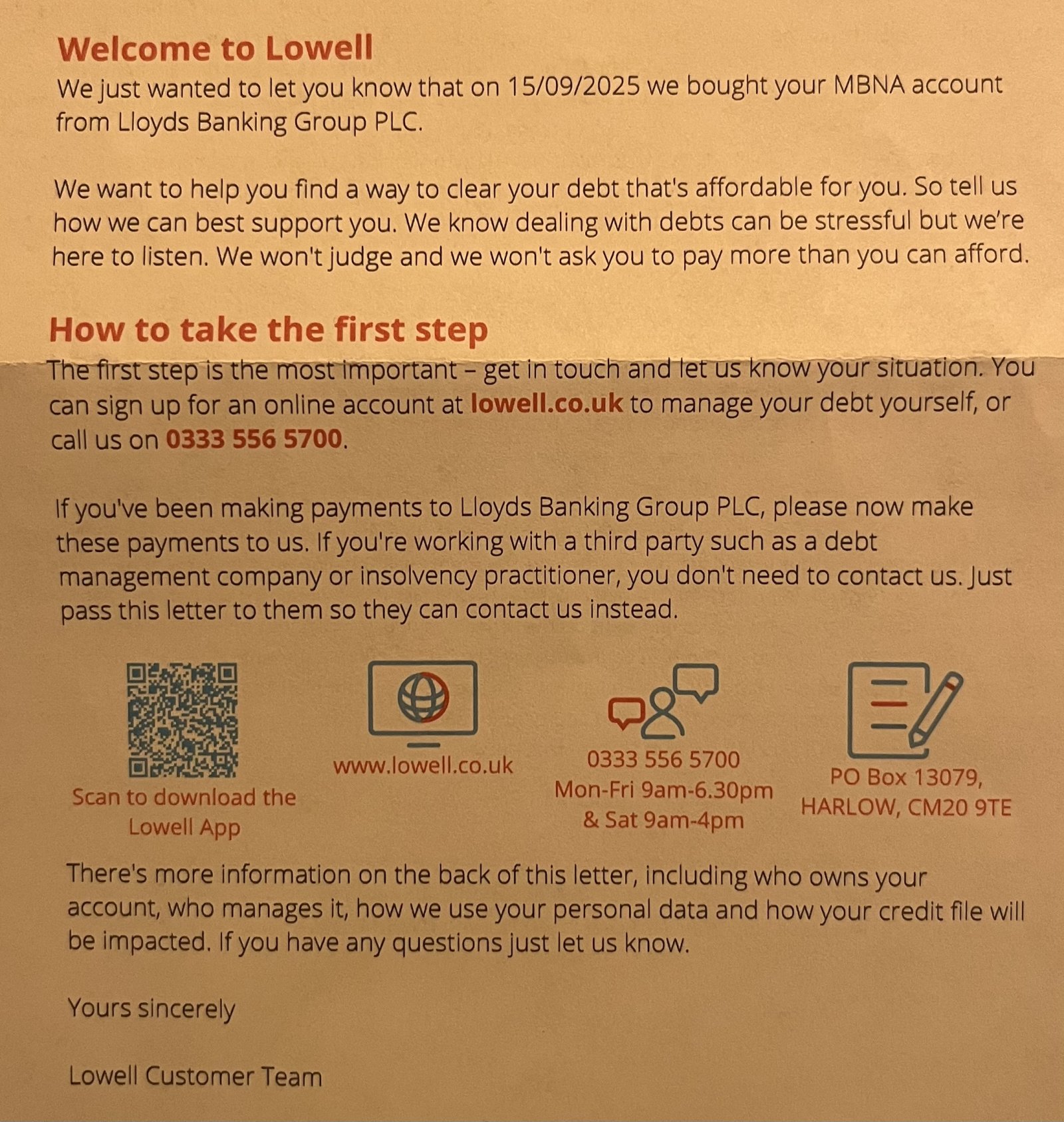 When you say you are "unable to repay the loan… " what do you mean by that, you are unable to afford monthly payments or the full balance or both?michaelyallop said:Thanks. I understand that. I did receive the letter and have read it. But my question is what do I do with Lowell? Continue as they state? As I am still unable to repay the loan…I’m a Forum Ambassador and I support the Forum Team on the Debt free wannabe, Credit file and ratings, and Bankruptcy and living with it boards. If you need any help on these boards, do let me know. Please note that Ambassadors are not moderators. Any posts you spot in breach of the Forum Rules should be reported via the report button, or by emailing forumteam@moneysavingexpert.com. All views are my own and not the official line of MoneySavingExpert.For free non-judgemental debt advice, contact either Stepchange, National Debtline, or CitizensAdviceBureaux.Link to SOA Calculator- https://www.stoozing.com/soa.php The "provit letter" is here-https://forums.moneysavingexpert.com/discussion/2607247/letter-when-you-know-nothing-about-about-the-debt-aka-prove-it-letter0 -