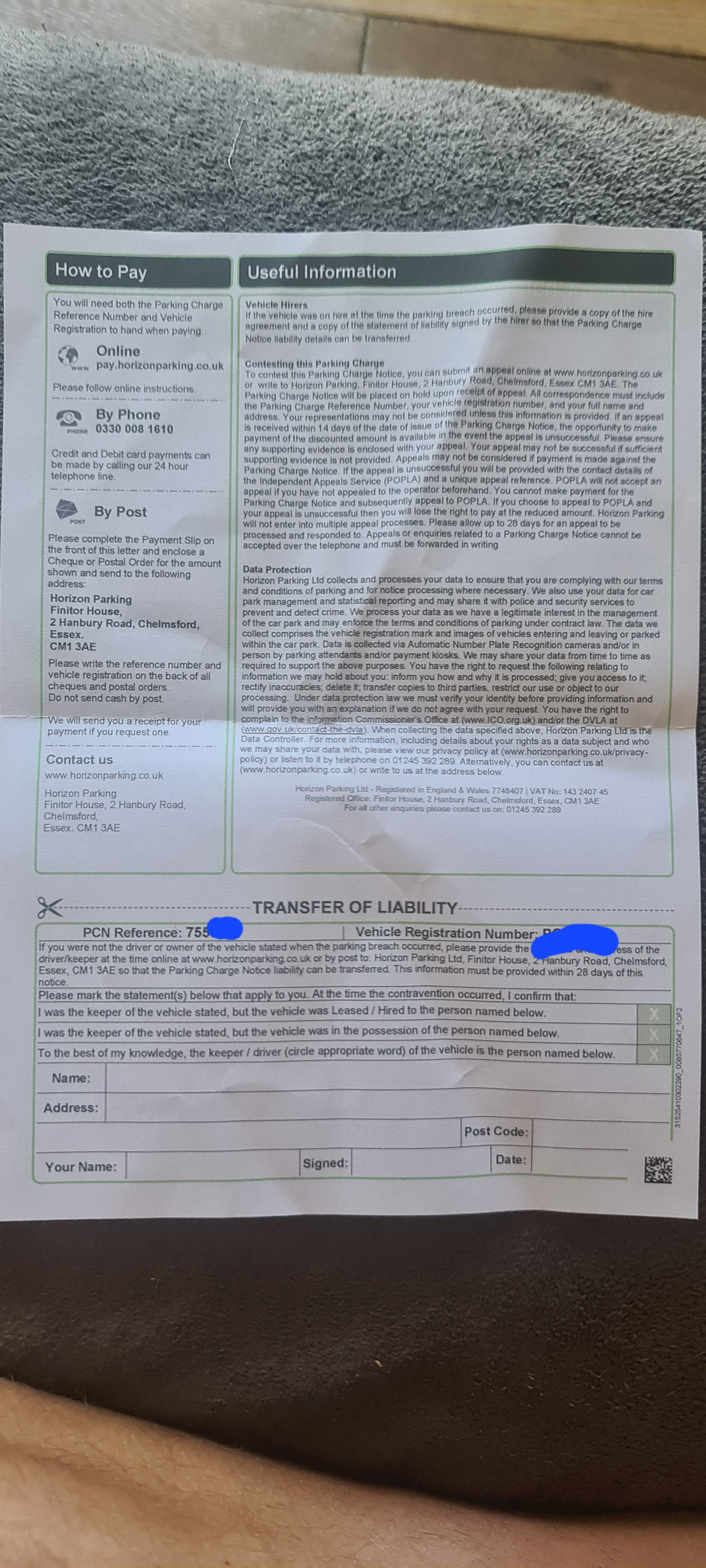 The appeal will work easily of course (as you already read in the NEWBIES FAQS thread, Horizon can't hold registered keepers liable). Easy peasy one.PRIVATE 'PCN'? DON'T PAY BUT DON'T IGNORE IT (except N.Ireland).