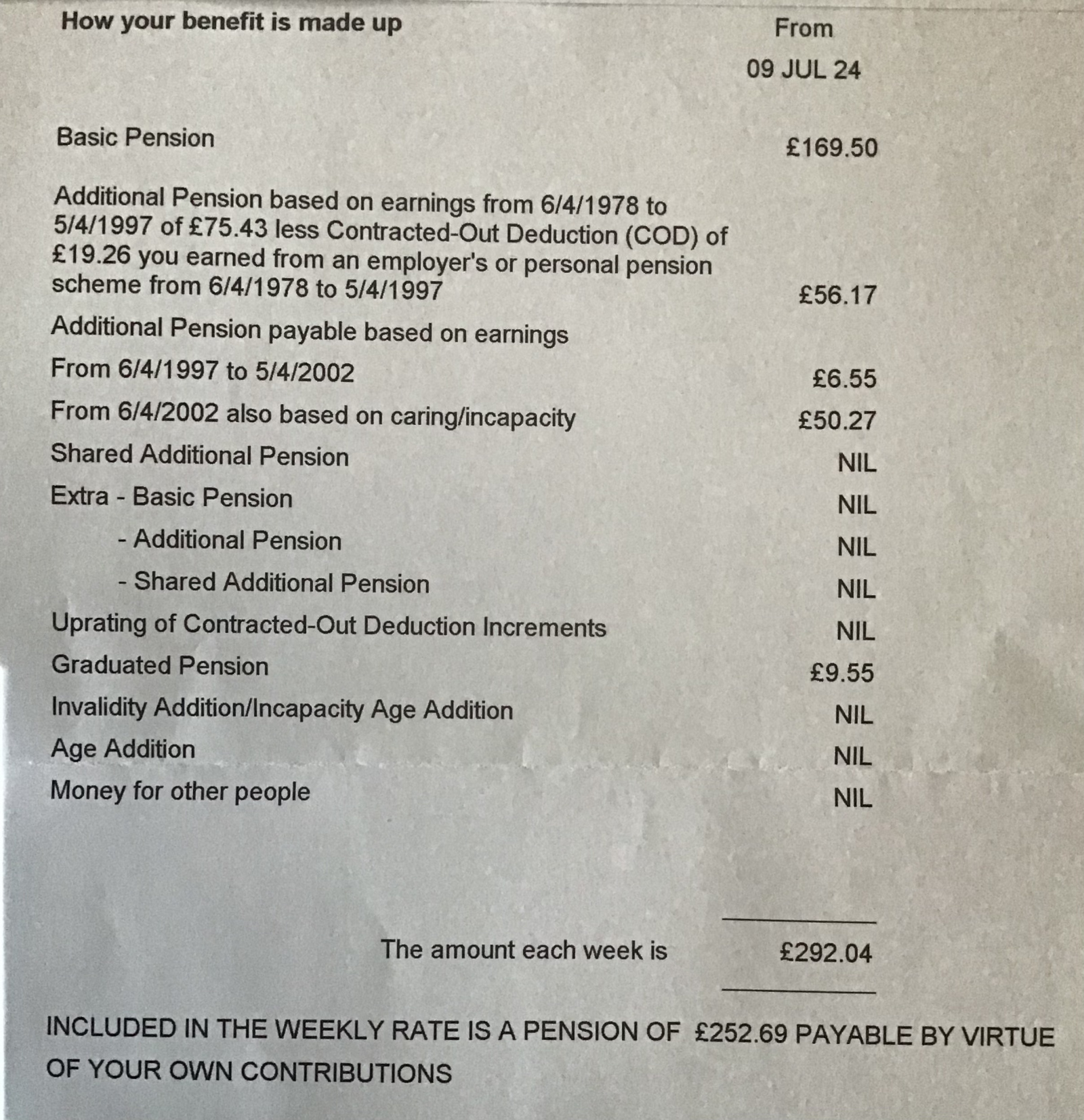 His pension would have been based on his entitlement to Basic State Pension and Additional State Pension (comprising
