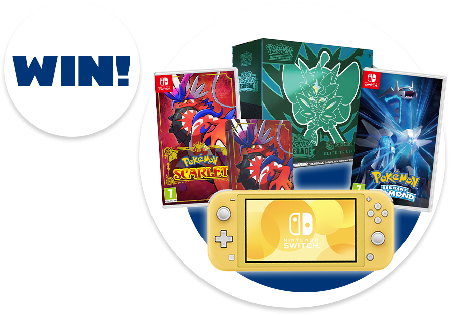 Competition ends 01/09/24 at 11.59PM (GMT) and is open to UK residents only. Six winners will win a Nintendo Switch Lite Console (colours may vary), a Pokémon TCG: Scarlet & Violet – Twilight Masquerade Elite Trainer Box, a copy of Pokémon Brilliant Diamond and Pokémon Scarlet for Nintendo Switch, and a Pokémon Scarlet Steelbook Case. All winners will be selected at random after the final competition date has passed. Full terms & conditions can be found at pop.co.uk. Please ask a grownup for help when entering this competition.
