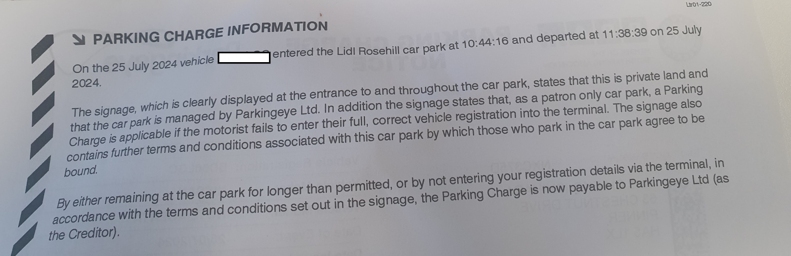 I will check, waiting on her to email me a copy of her bank statement. But we usually do our weekly shop at our Local Lidl.Coupon-mad said:Does she have a Lidl receipt over £30?PRIVATE 'PCN'? DON'T PAY BUT DON'T IGNORE IT (except N.Ireland).