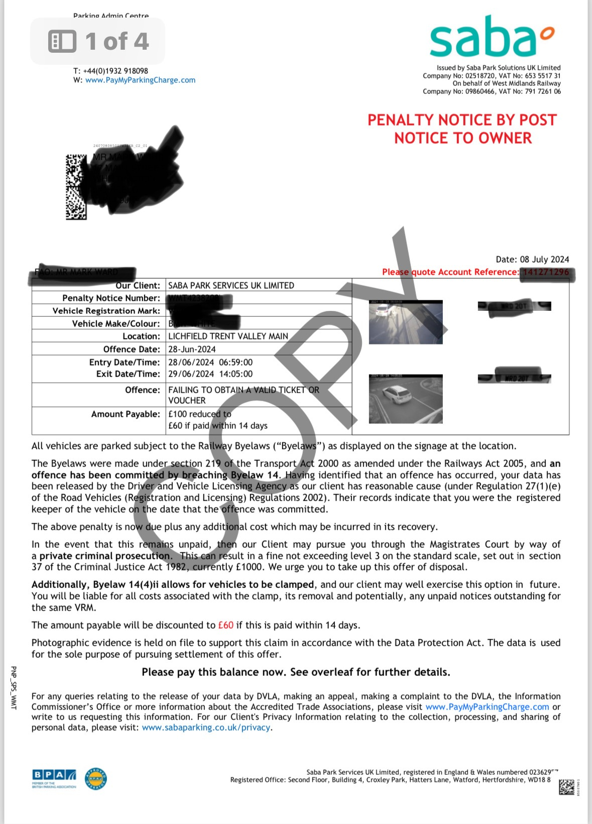 Please show it again but redacted properly.PRIVATE 'PCN'? DON'T PAY BUT DON'T IGNORE IT (except N.Ireland).