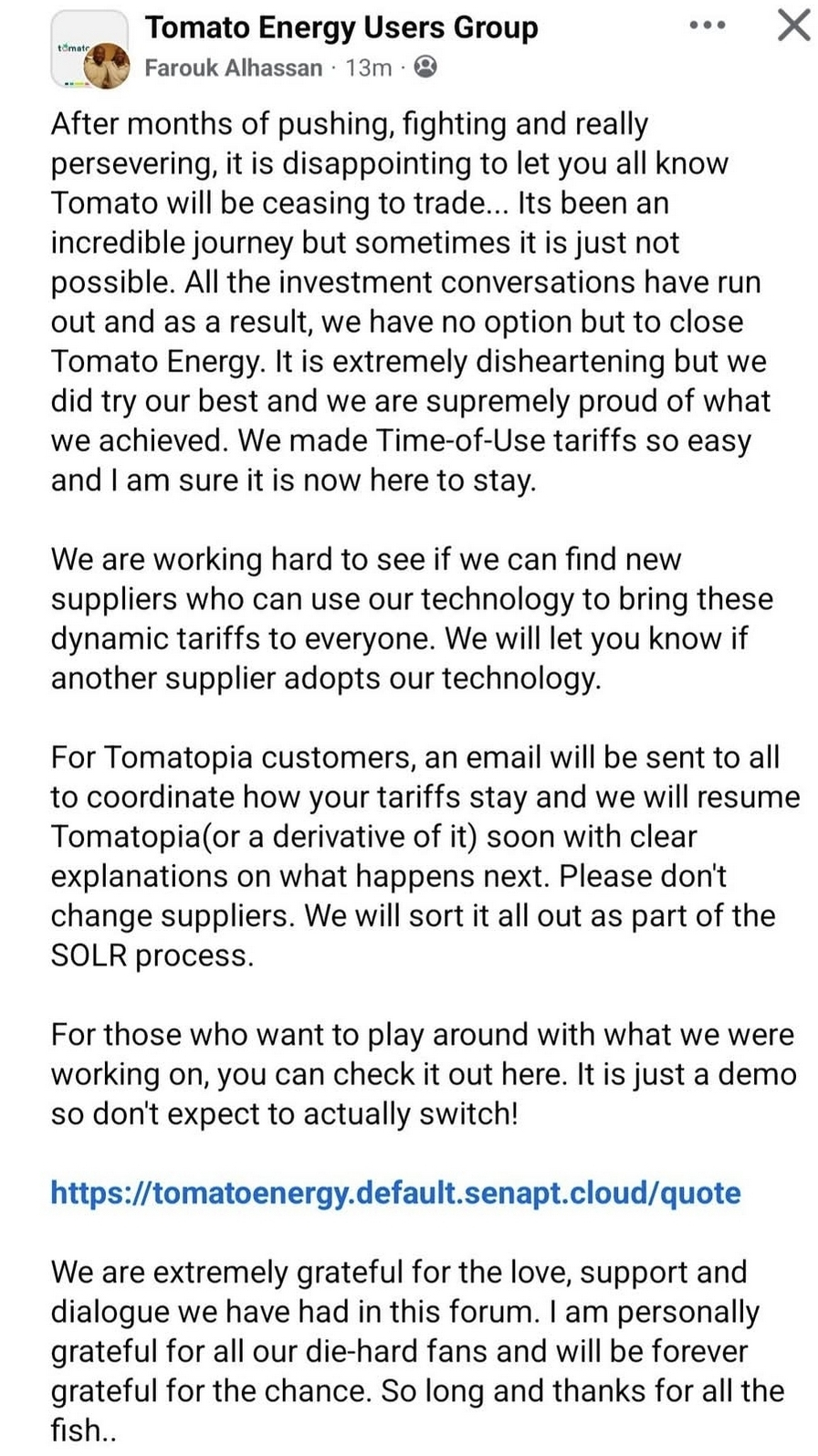 Tomato Energy (Electric Only Supplier) - Too Good To Be True ?