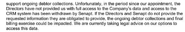 Indeed. It does lead one to speculate about the reason for withdrawing access to the customer data. Who knows whether or not Senapt will itself survive the loss of its key customer, but it does not appear to be in the Directors' interests not to cooperate with the reconciliation exercise, unless...0