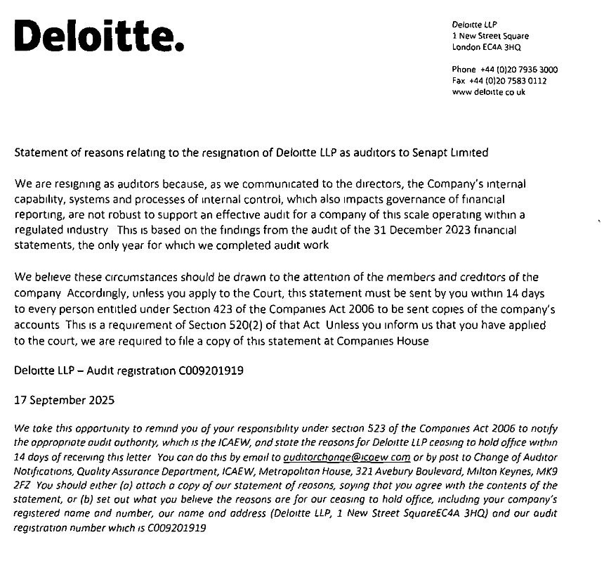 masonic said:Indeed. It does lead one to speculate about the reason for withdrawing access to the customer data. Who knows whether or not Senapt will itself survive the loss of its key customer, but it does not appear to be in the Directors' interests not to cooperate with the reconciliation exercise, unless......add in the earlier resignation of their auditors and you have a clear picture of just how poor the management has been.