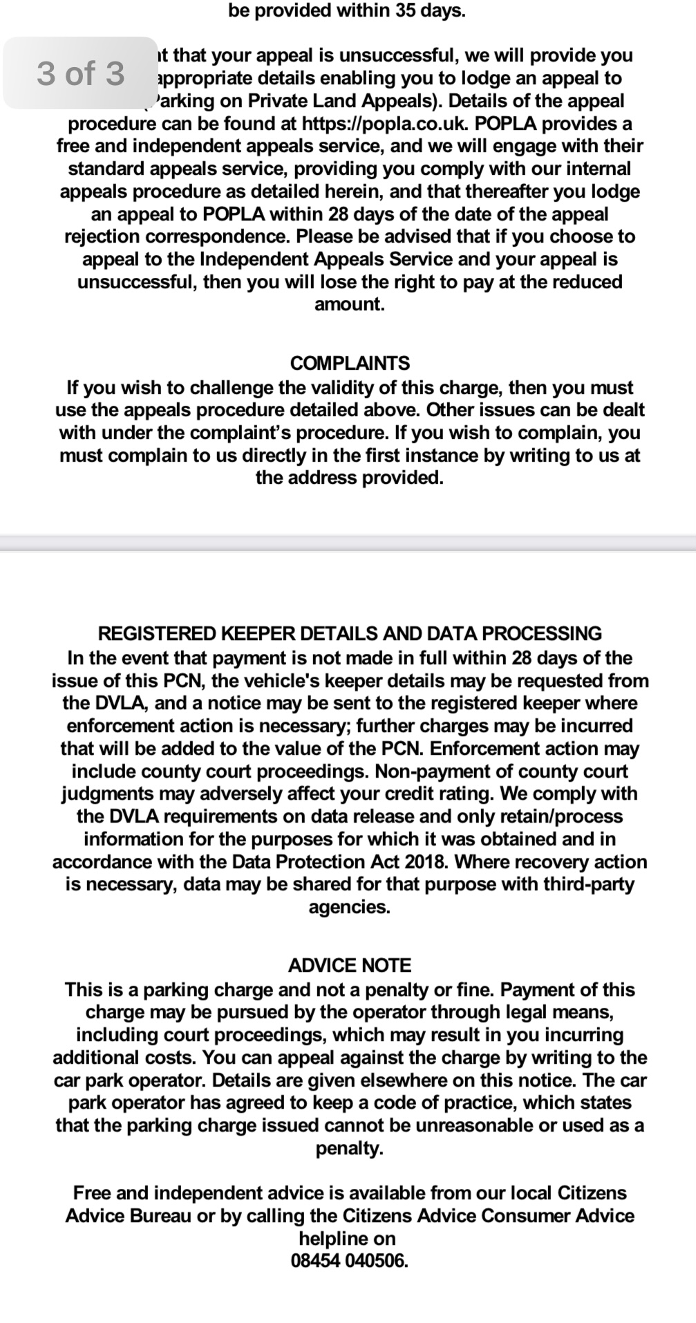 Please note that these comments must relate to the grounds of appeal you submitted when first lodging your appeal with POPLA, we do not accept new grounds of appeal or evidence at this stage