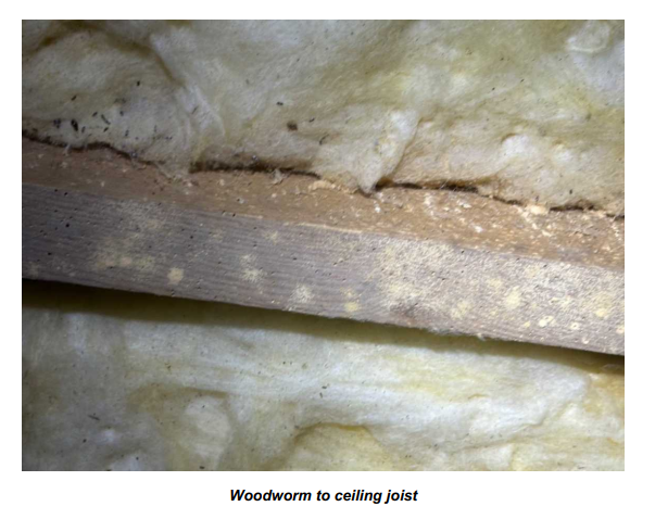 So, our survey has come back with everything fine except 'evidence of woodworm attack is present to some elements of the roof structure and also to some of the ceiling joists. A timber treatment specialist should undertake treatment to these timbers.'