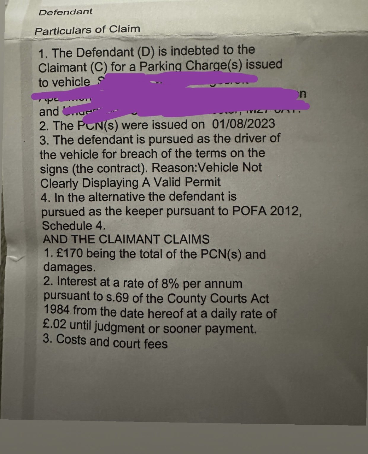 Can you please show us a picture of the Particulars of Claim - with personal detail hidden of course.
