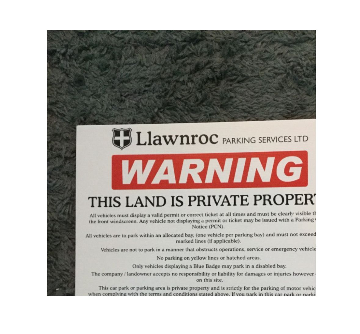couple of car park signs taken on a bed.Can we see that please?Please note, we are not a legal advice forum. I personally don't get involved in critiquing court case Defences/Witness Statements, so unable to help on that front. Please don't ask. .