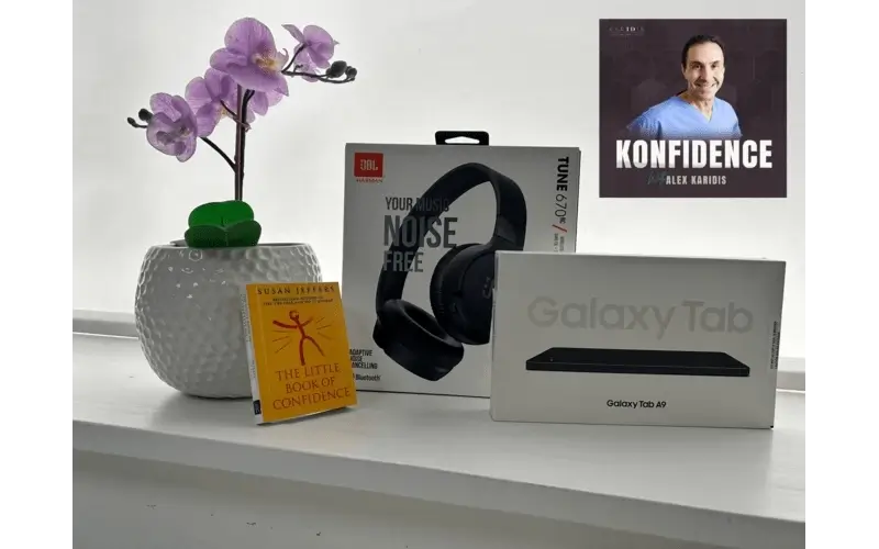 Samsung Galaxy Tablet, JBL Wireless On-Ear Headphones, "The Little Book Of Confidence” by Susan Jeffers and a free consultation with Dr Alex Karidis x1