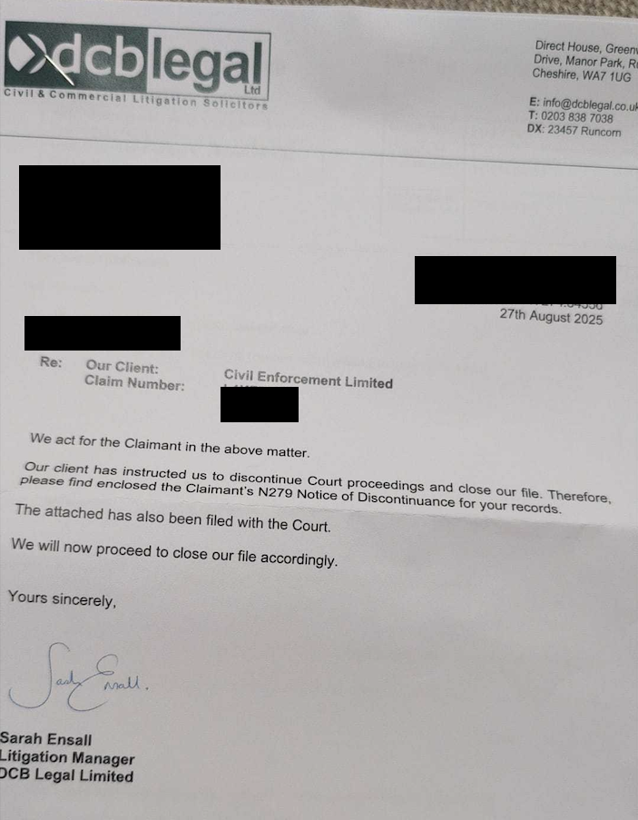 We can't yet add your success to the discontinuances thread by @UmkomaasPRIVATE 'PCN'? DON'T PAY BUT DON'T IGNORE IT (except N.Ireland).
