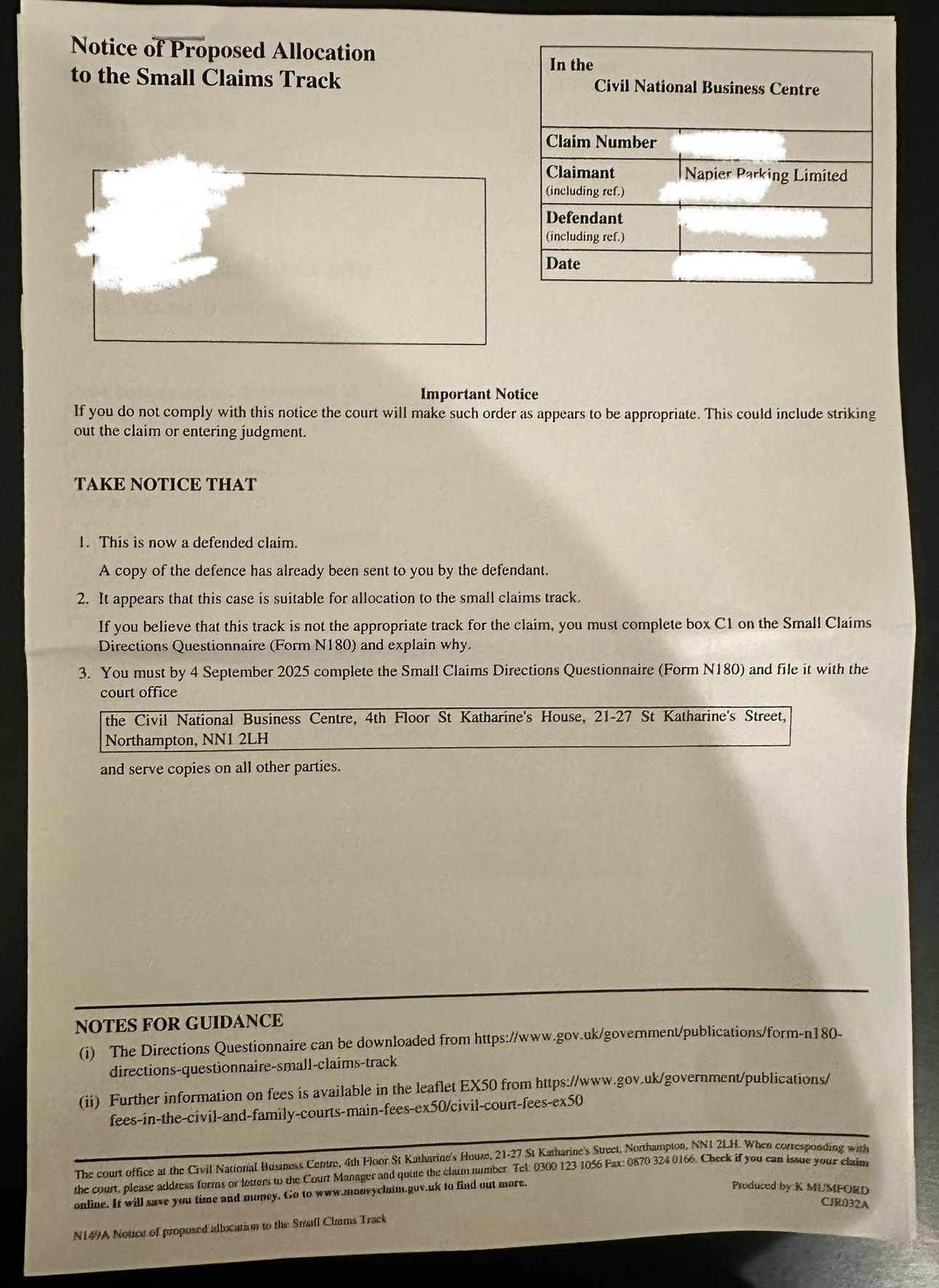 PRIVATE 'PCN'? DON'T PAY BUT DON'T IGNORE IT (except N.Ireland).