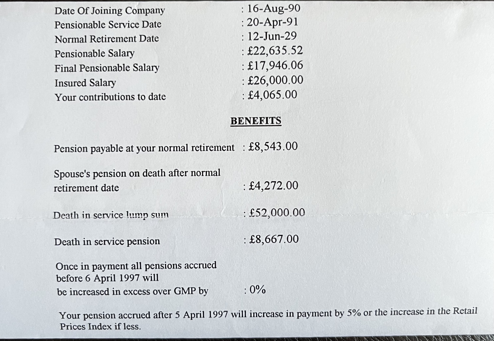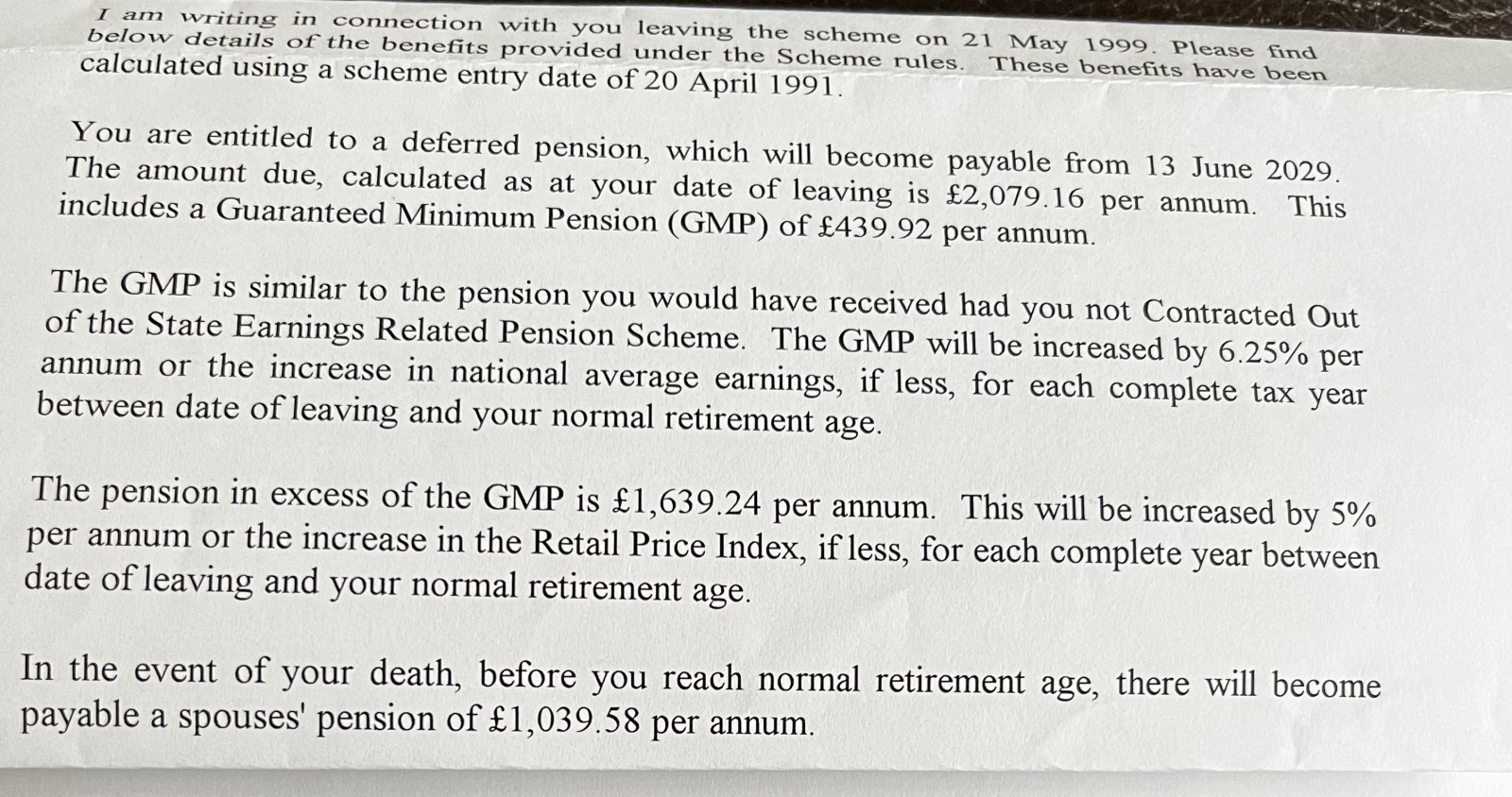 apologies again but I couldn’t work out how to share them in one post. This snip is from a letter with a Summary of Benefits as at 6th April 1998 -
