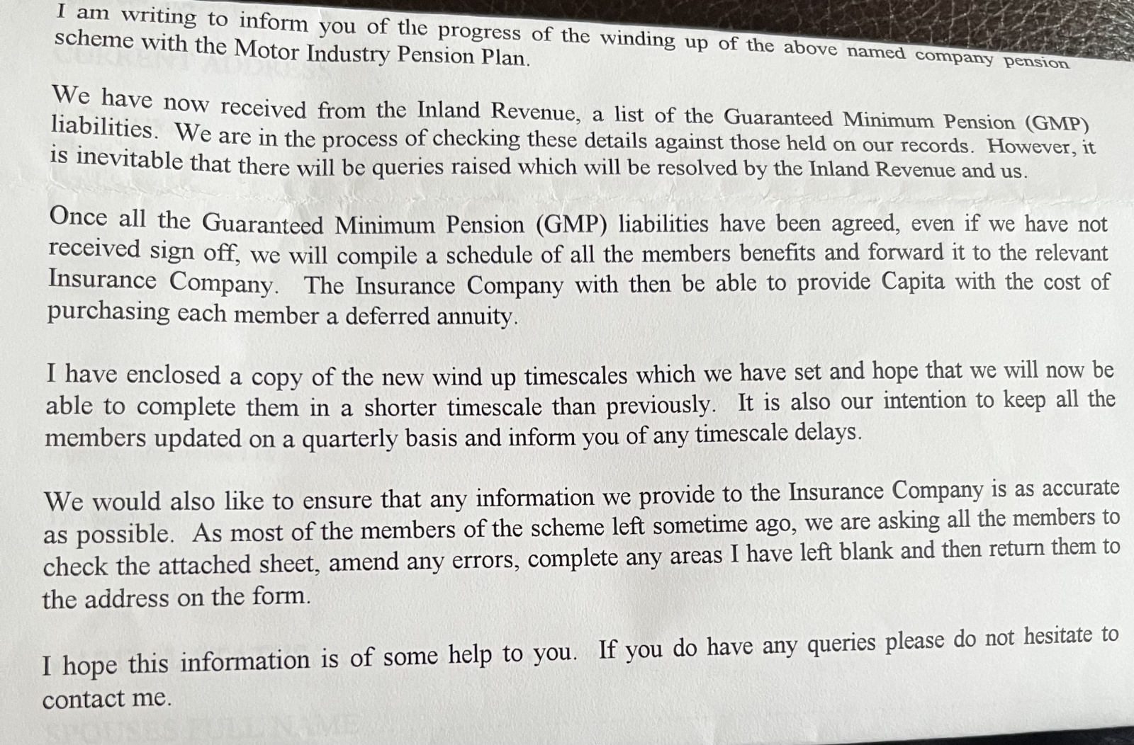 However, within a year or so of your departure, the Trustees commenced wind up ( was the Scheme underfunded?)