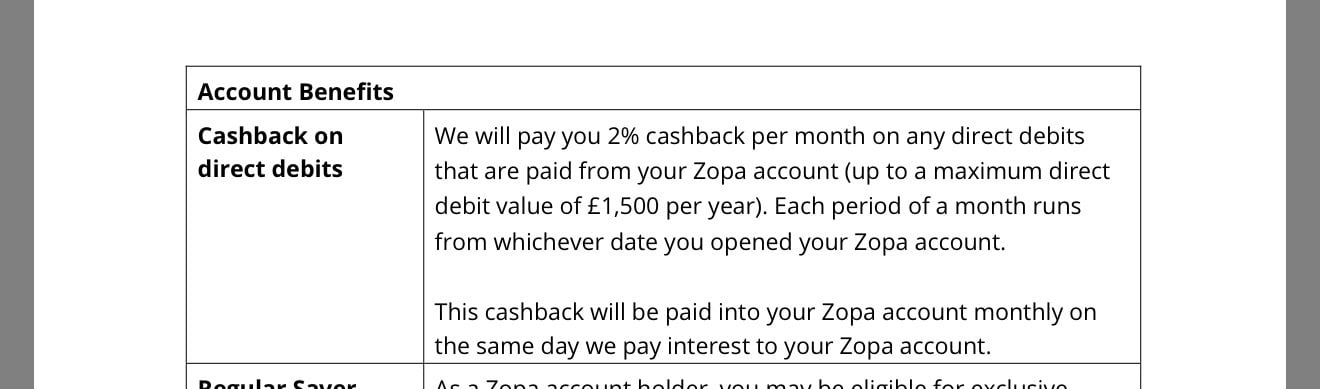I had an email the other day to update on some changes to Zopa CA T&Cs they are enacting in Feb. There are some changes to the cashback T&Cs, which to me sounds like it might be something they could be thinking of tweaking a bit. Could be worthwhile getting your 2nd years cashback sooner rather than later...Can't seem to find this document they reference yet...Cashback on billsWe’re removing information about cashback on Direct Debits from our bank account terms, but you can still find it in the Fees and Useful Information document in the Zopa app0