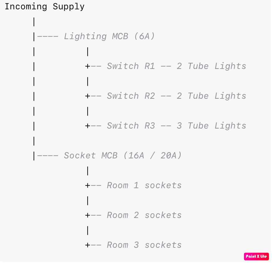 Room1 & 2 are the main rooms and Room 3 the new space created in the extension area.Don't use ChatGTP to design electrical systems. It has given you a meaningless image, not a 'wiring diagram'.Before anything else you need to think about WIAWSNB's question - how are you getting a supply to the shed?I’ve just replied to this now. This is something I need to figure out myself. Looking back, I realise there were clues that I somehow ignored when I originally posted this question on the forum in 2022, before I started planning the stable rebuild.