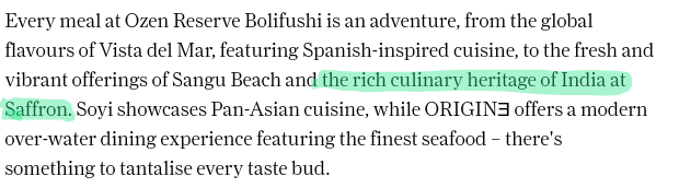Answer (from text) - SaffronBoeingAirbus said:What is the name of Ozen Reserve Bolifushi’s Indian-inspired restaurant?