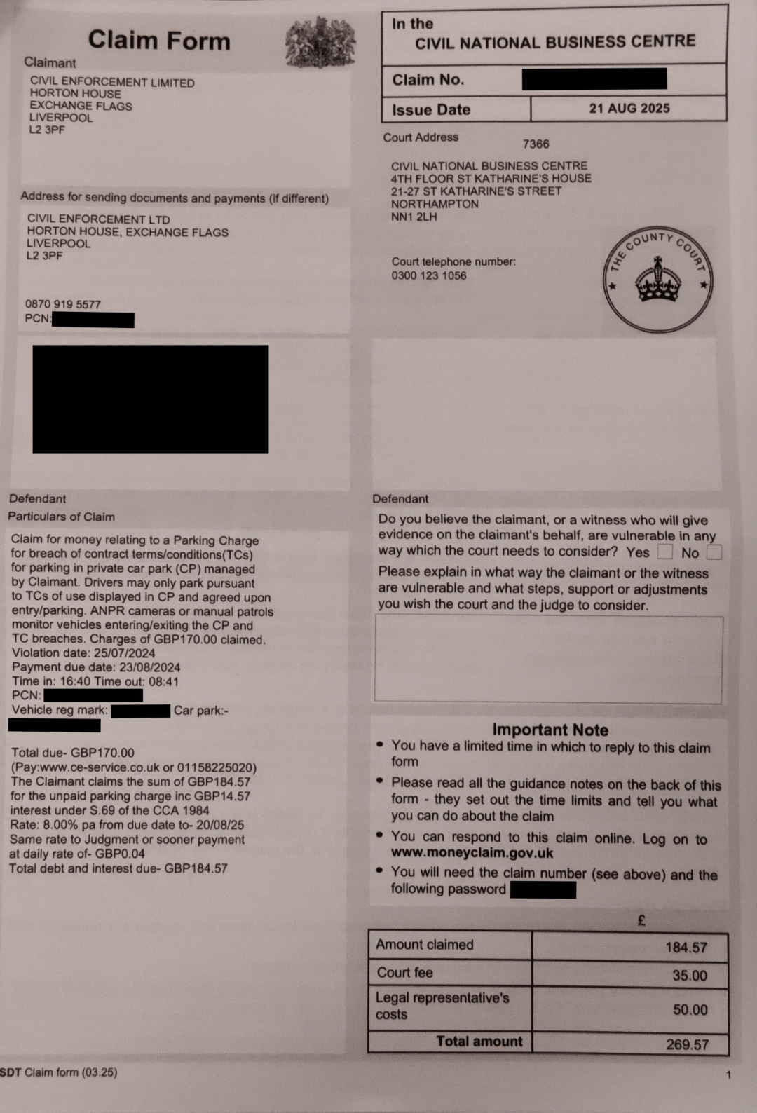 1505grandad said:Can you post a copy of the claim form redacting personal data including VRM, password etc. but leave all dates showing.
