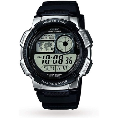 - Features countdown timer, stopwatch and five alarms