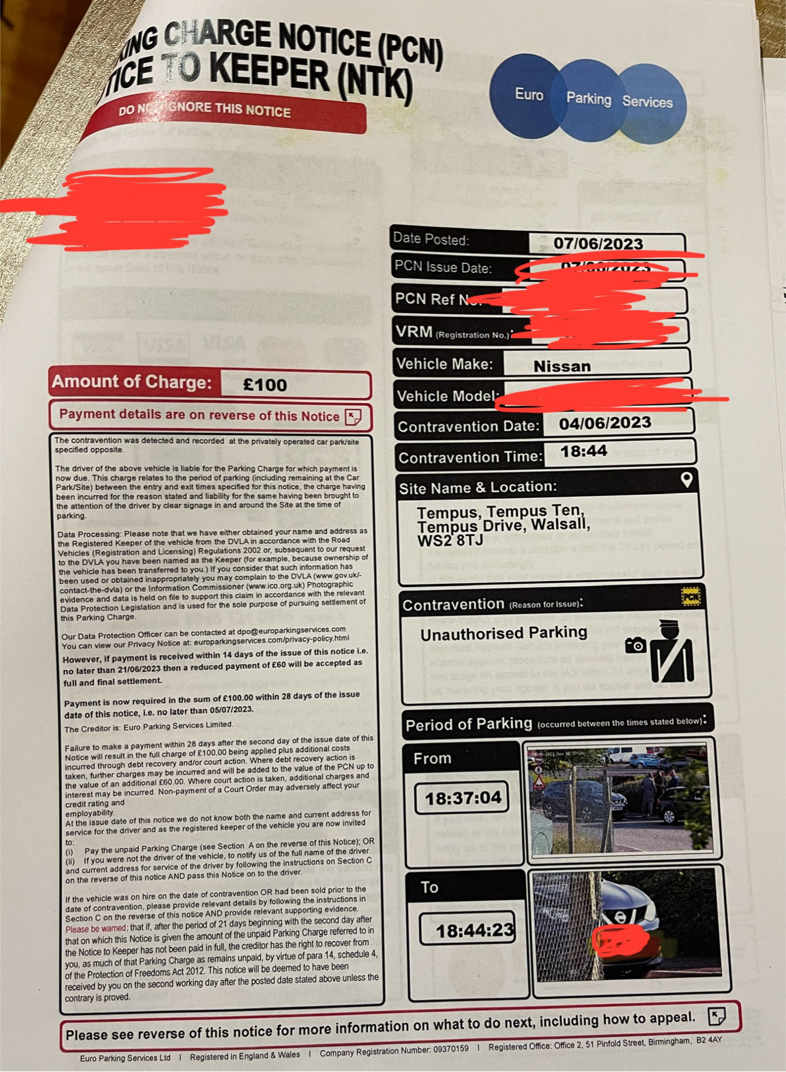 ...and importantly, nor was there any warning of camera surveillance (seems the ticketer was lurking behind a wire fence). Covert surveillance even with a hand held camera is illegal under the DPA 2018 and UK GDPR.