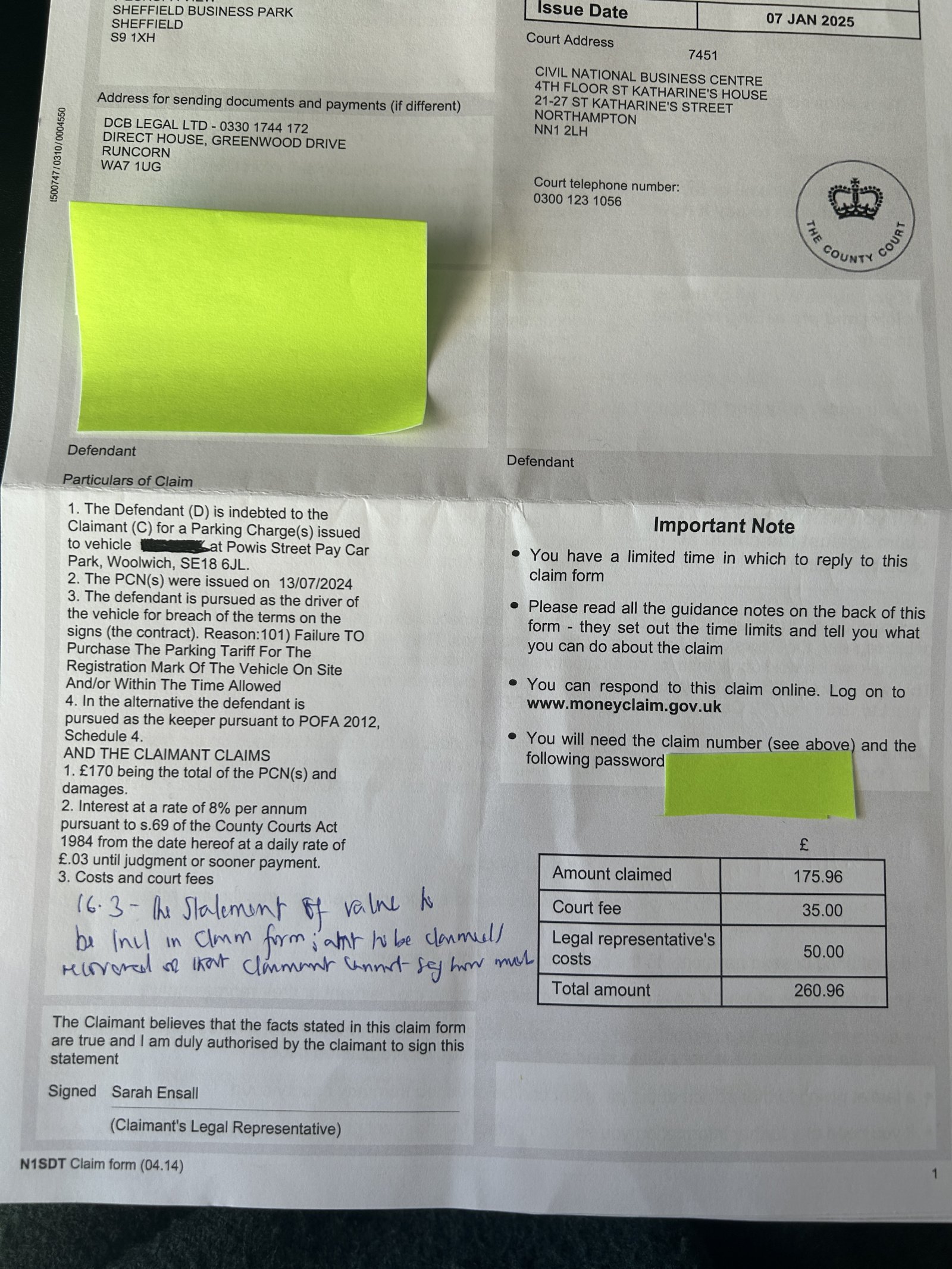 Can you please show us a picture of the Particulars of Claim - with all your personal detail hidden of course.