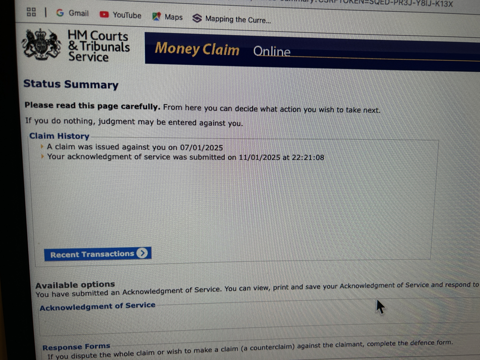 With a Claim Issue Date of 7th January, and having filed an Acknowledgment of Service('AOS') in a timely manner, you have until 4pm on Monday 10th February 2025 to file a Defence.