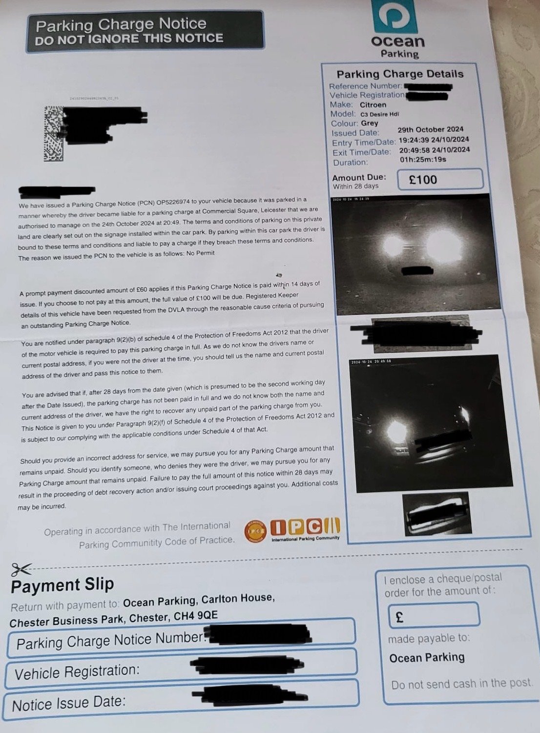 A friend of mine received three tickets for parking without a permit. It’s a car park with a shared entrance for a sports centre / cash and carry. He parked on the sports centre side and has parked there for years but a group of them received a number of tickets in the post.