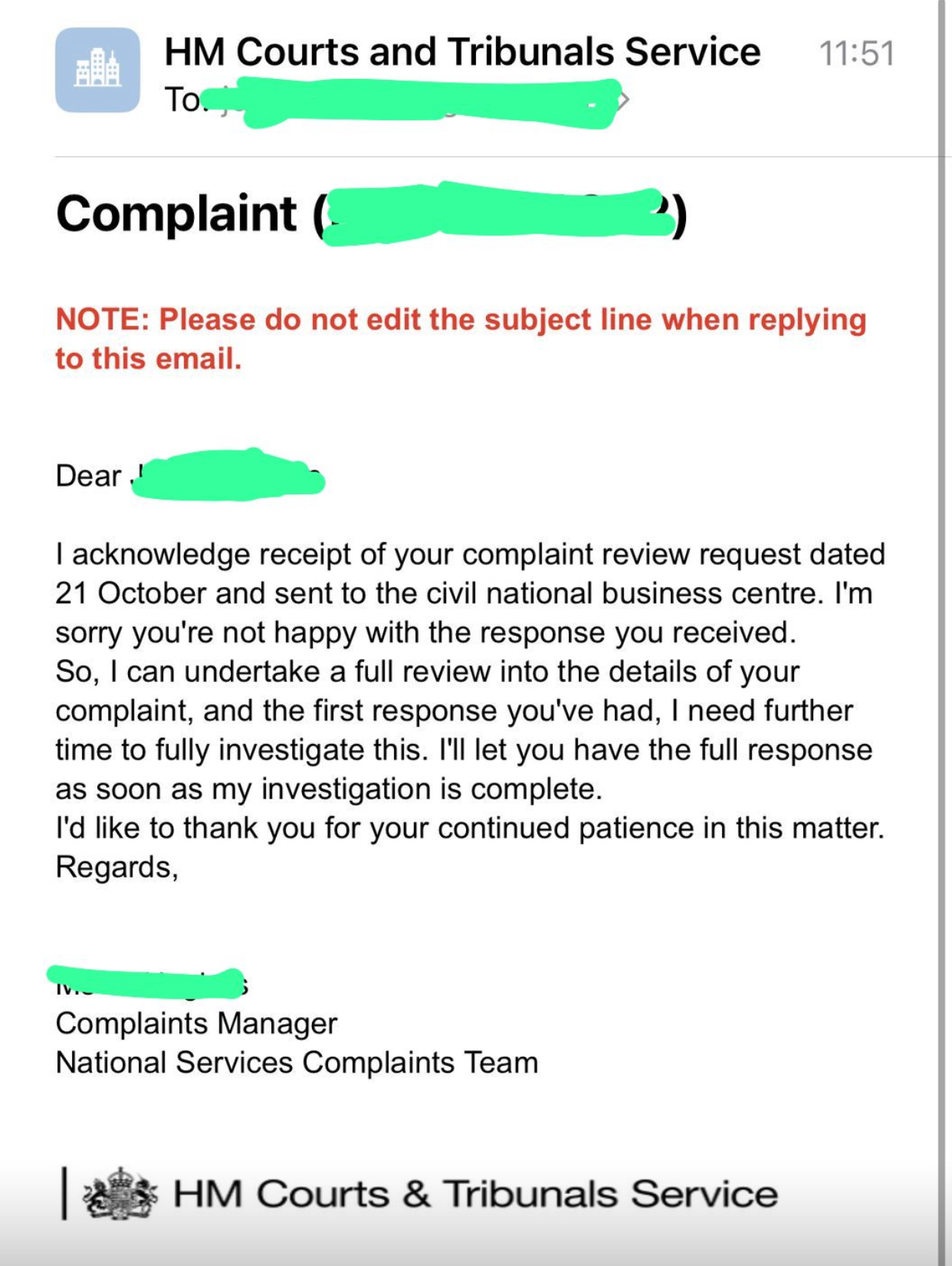 I’ve finally received a response from HMCTS in regards to my formal complaint that I made.