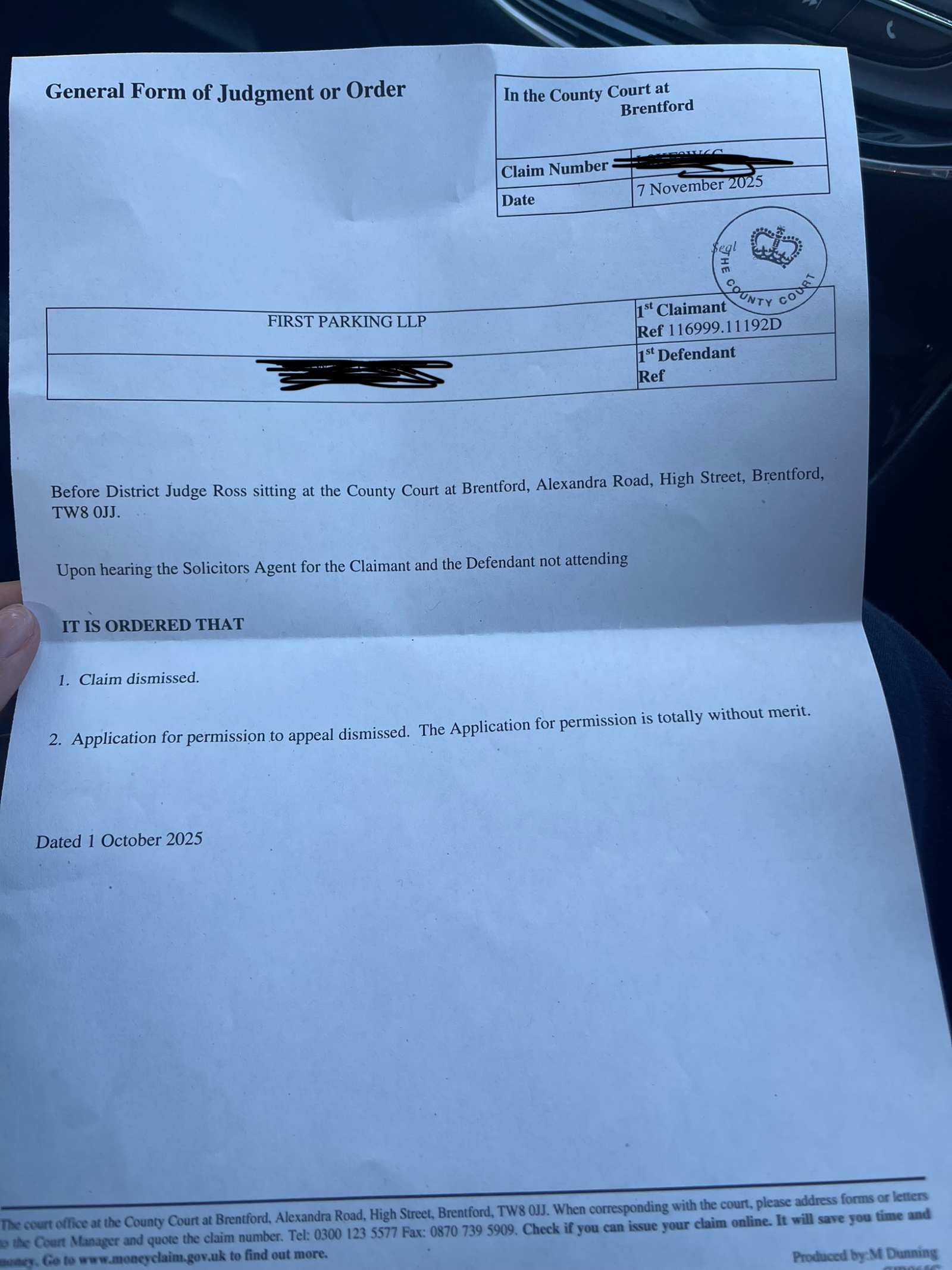 Over the moon as the claim was dismissed!!! Soo happy - thanks to everyone here!!