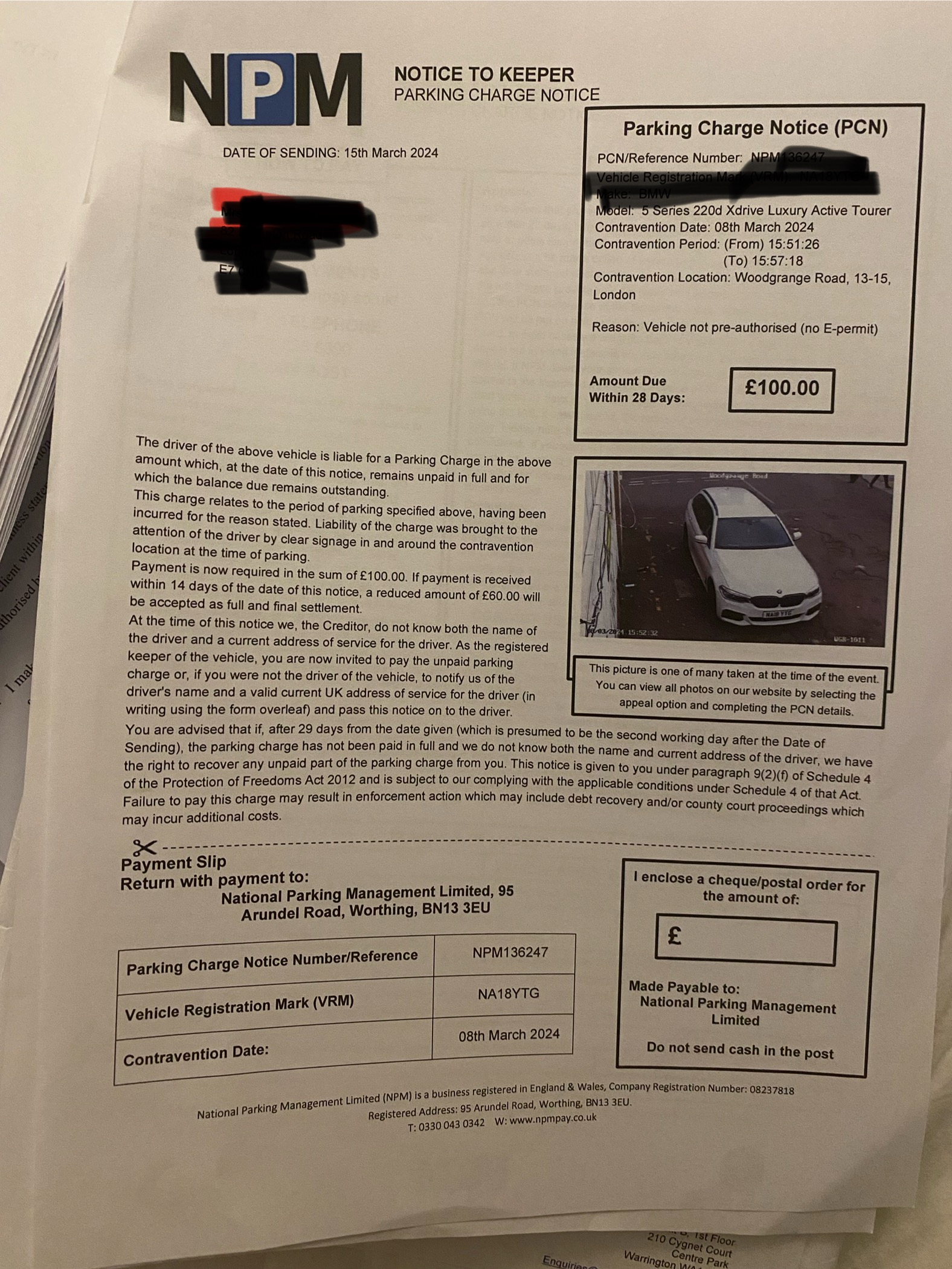 1.2 This statement sets out the events and circumstances relevant to the parking charge notice (PCN) issued by National Parking Management (the Claimant) concerning an alleged parking contravention at Woodgrange Road on 08/03/2024.