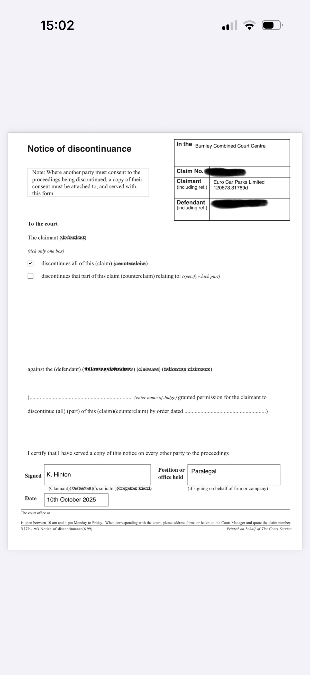 Court hearing date finally received and set for 11th November 2025. DCB legal have until 14th October to pay the hearing fee.