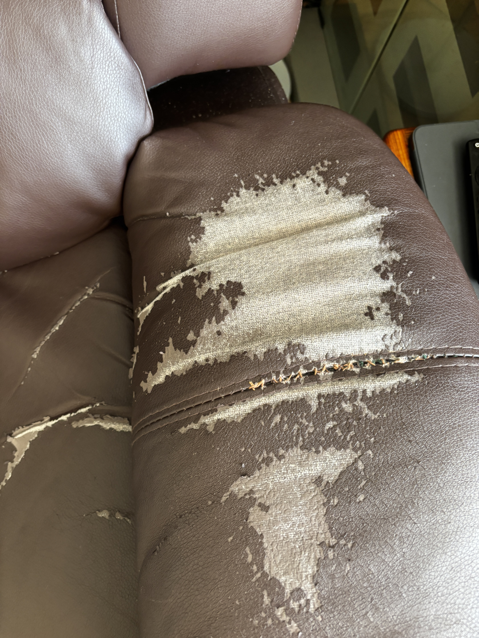 That arm and the seat seem to have had an extremely hard life. Stitching has failed and seemingly been bodged back together too.0