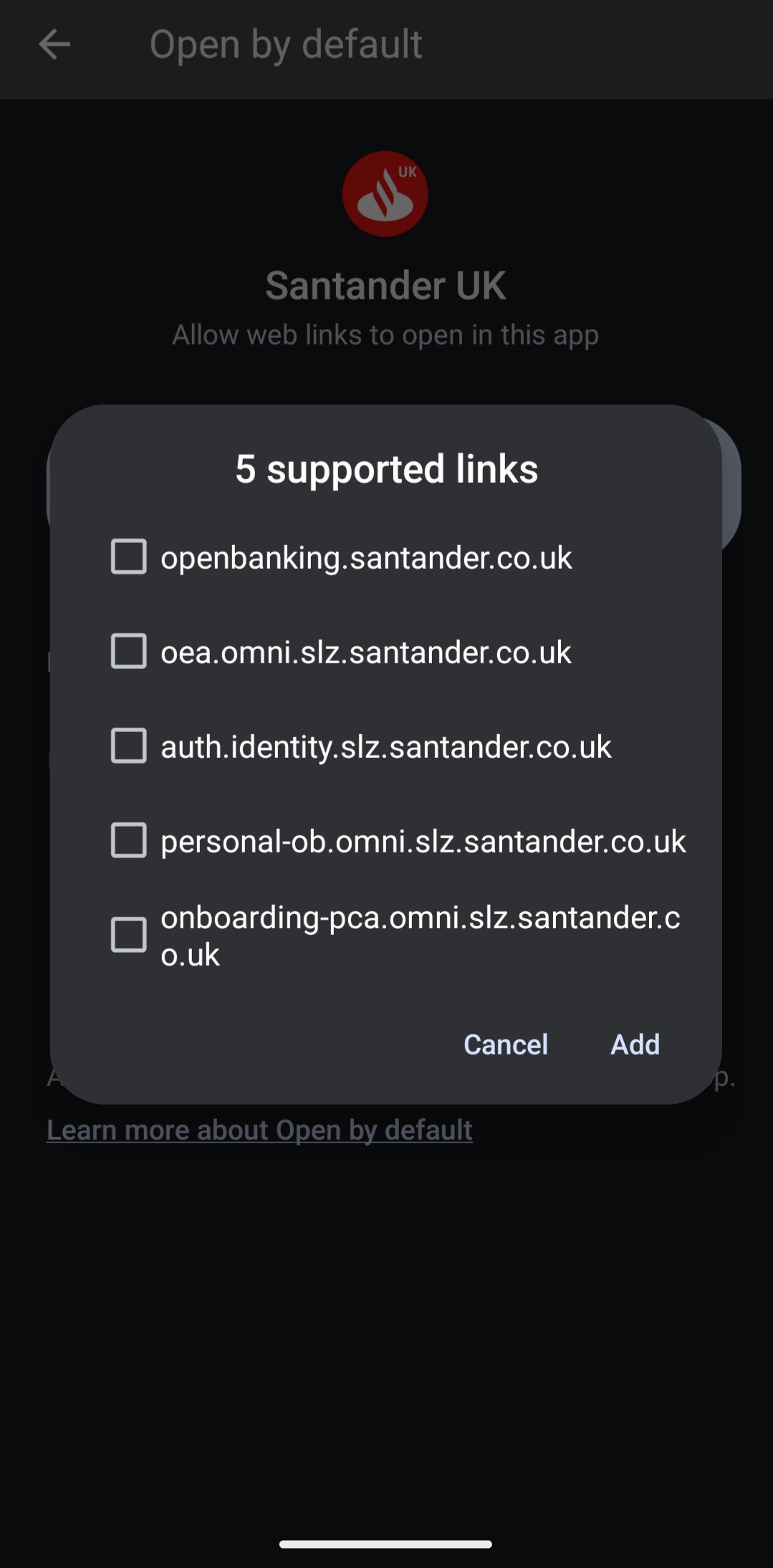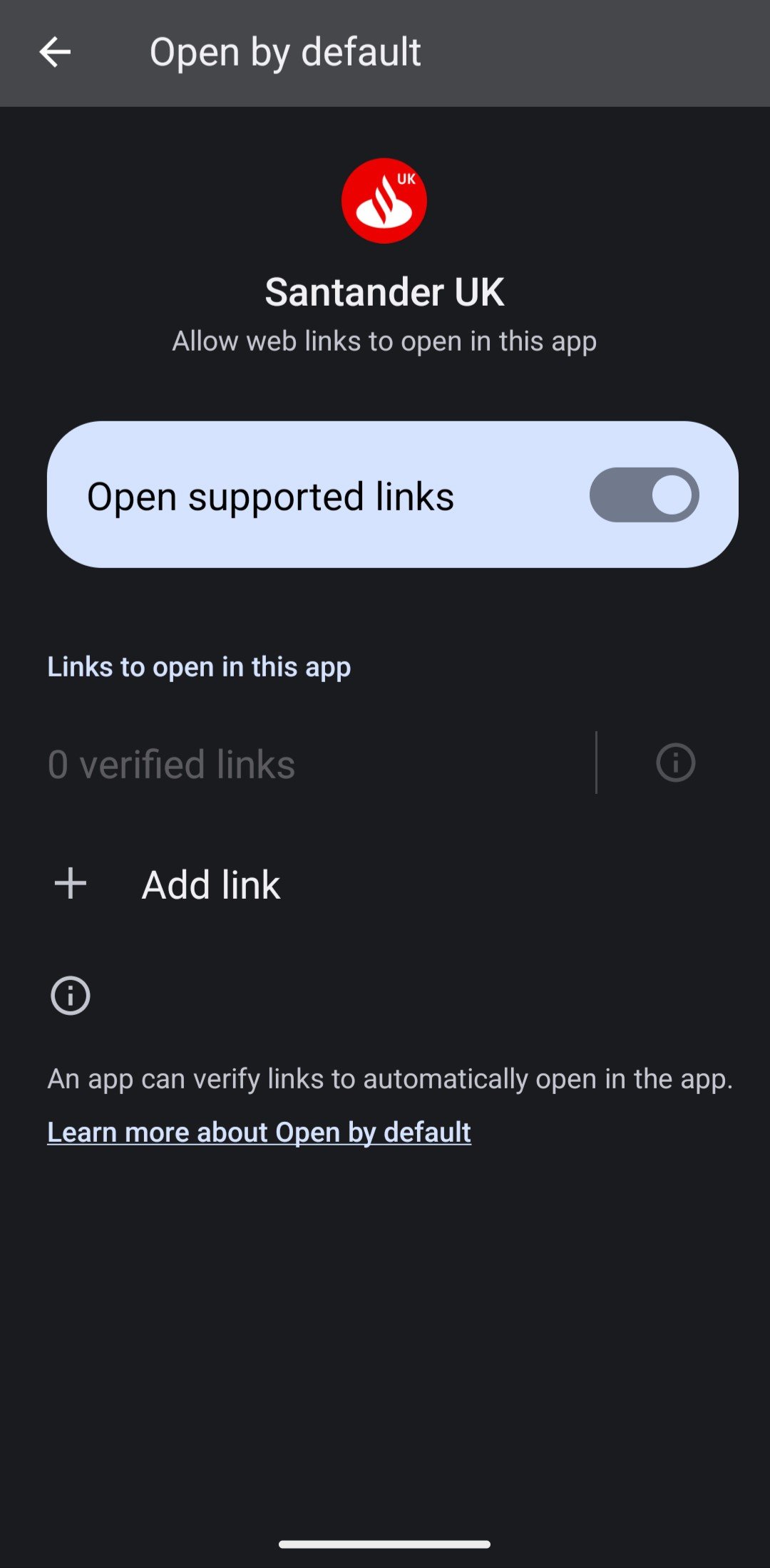 I also had this issue where the email link didn't work. I have an Android phone so this fix may be different for other systems.I was able to fix it by changing some of the Android settings for the Santander UK app.