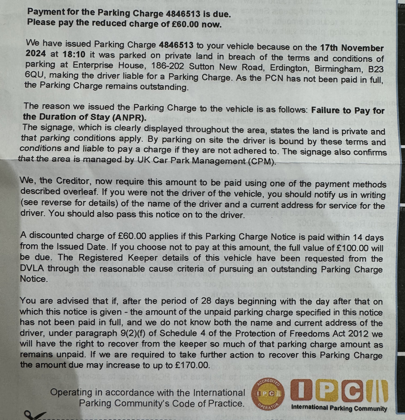 PRIVATE 'PCN'? DON'T PAY BUT DON'T IGNORE IT (except N.Ireland).