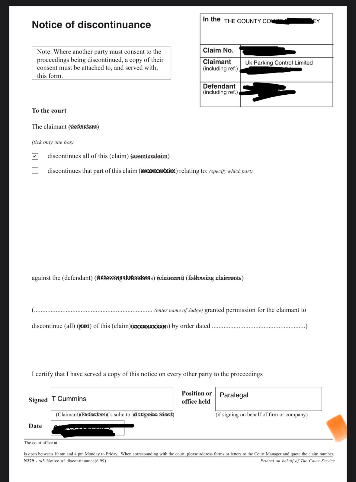 are they likely to discontinue rather than pay their claimant fee (due 5th nov)?