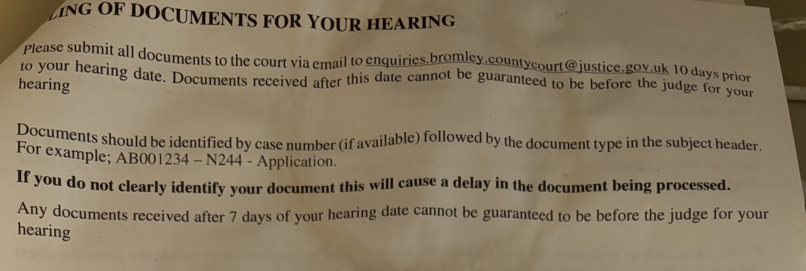 doesn't look like i have anything to do until providing evidence upto 10 days before the hearing, and i'll wait to make sure they proceed past thee claimant deadline in November before i do that